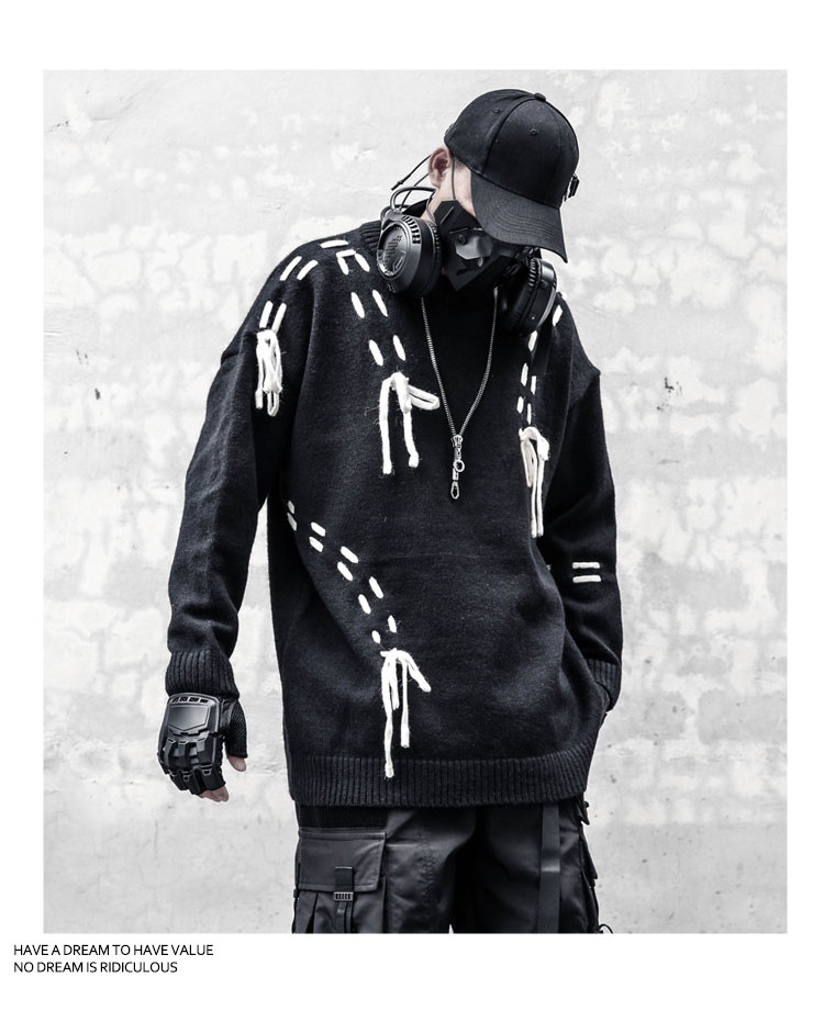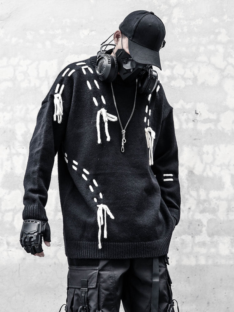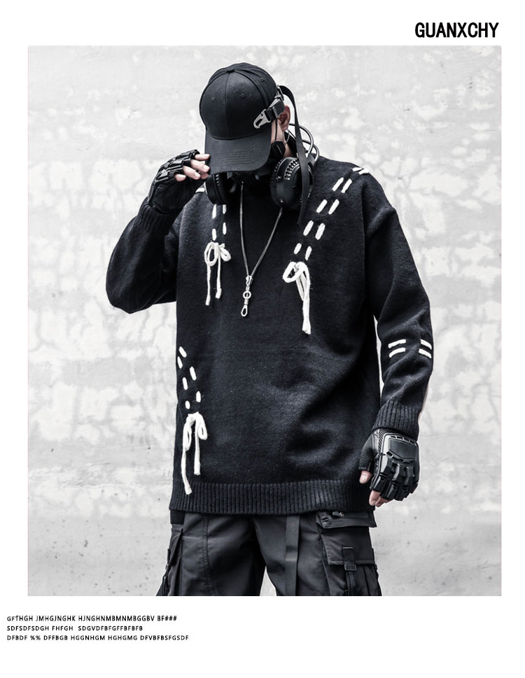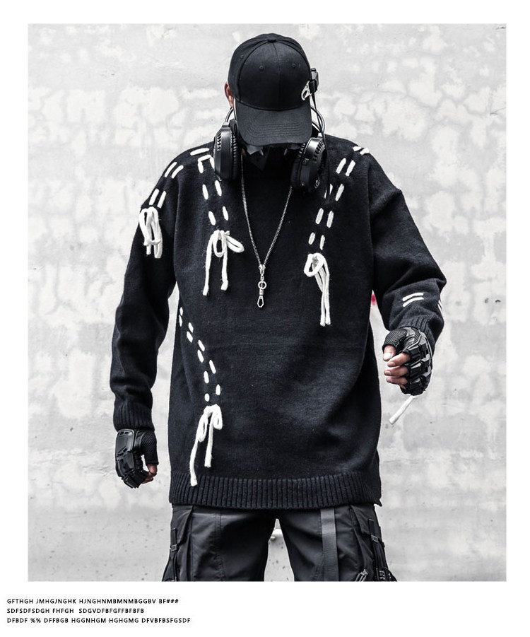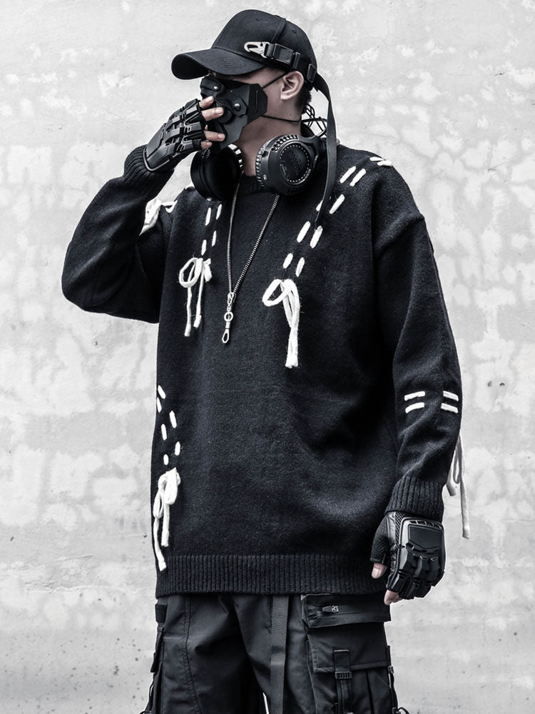 Drawstring Color Block Long Sleeve Knit Sweater WN22586