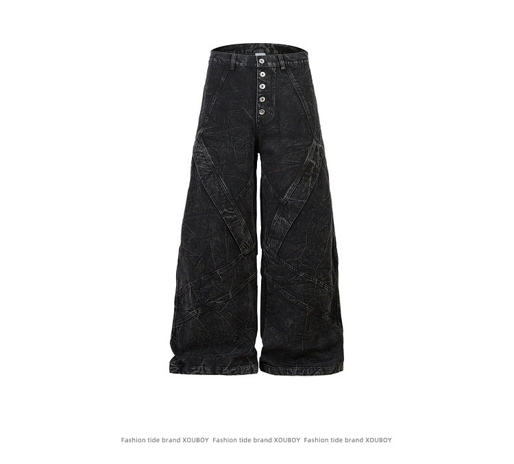 Patchwork Wash Wide Leg Straight Denim Jeans WN23027