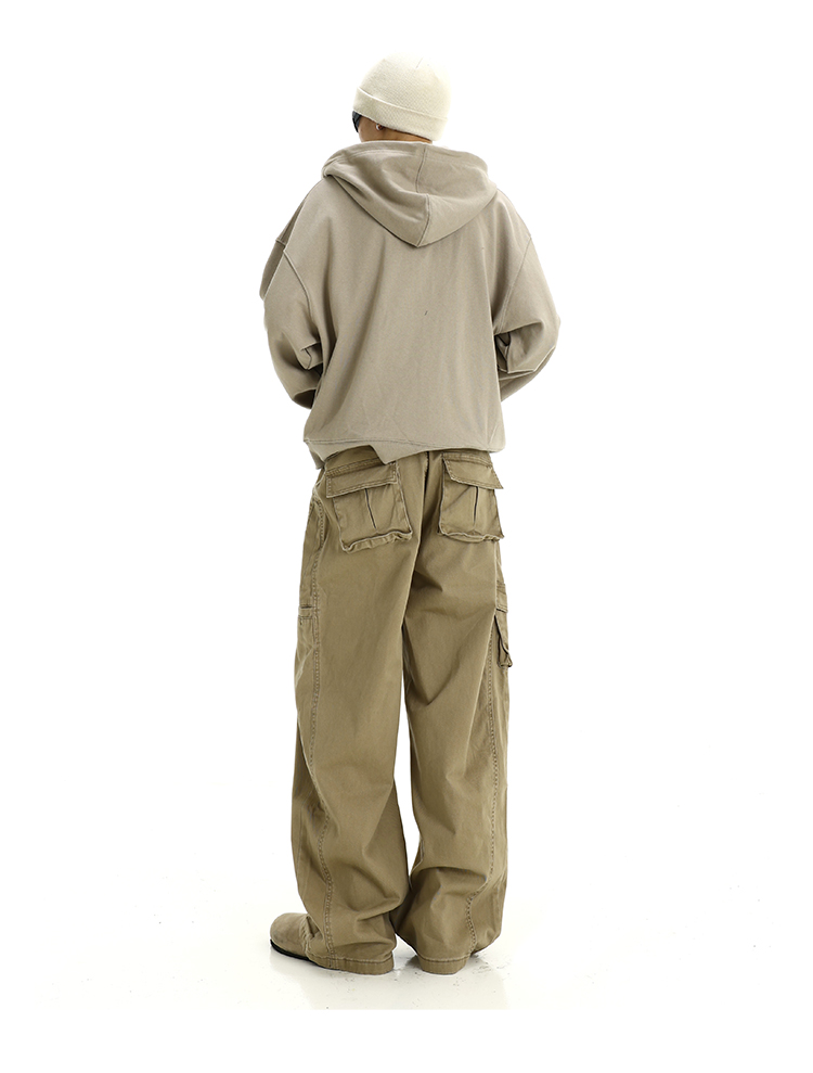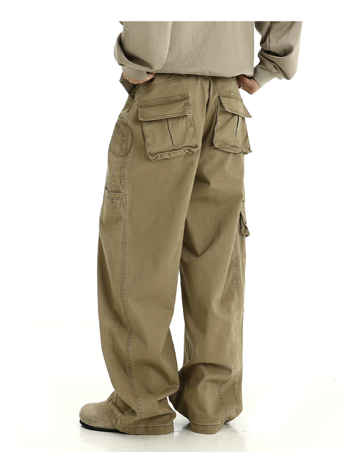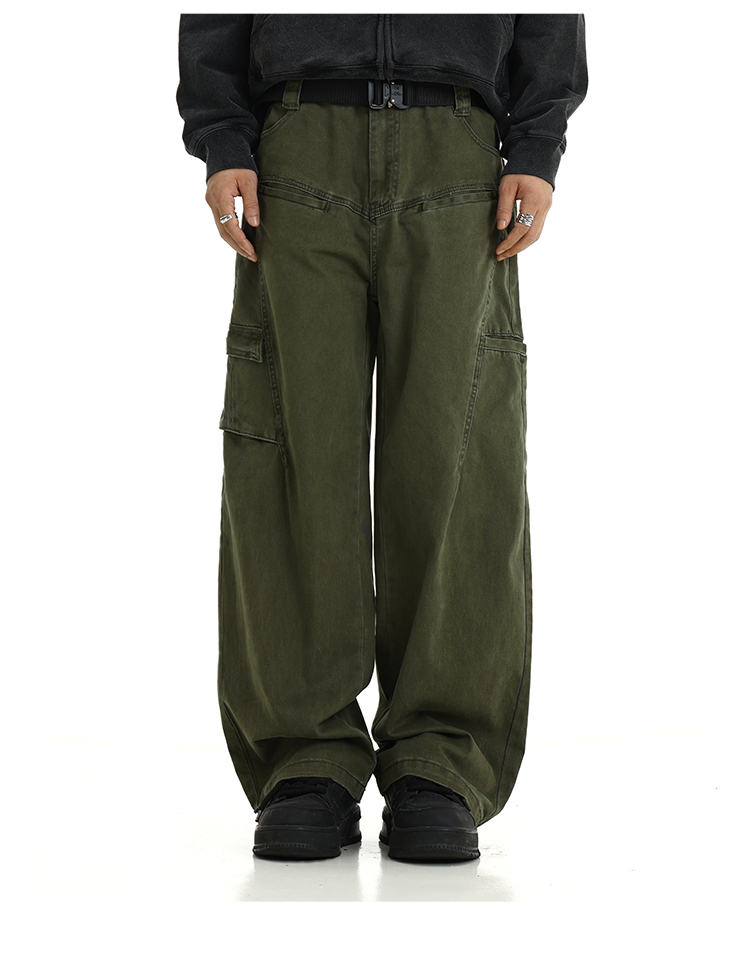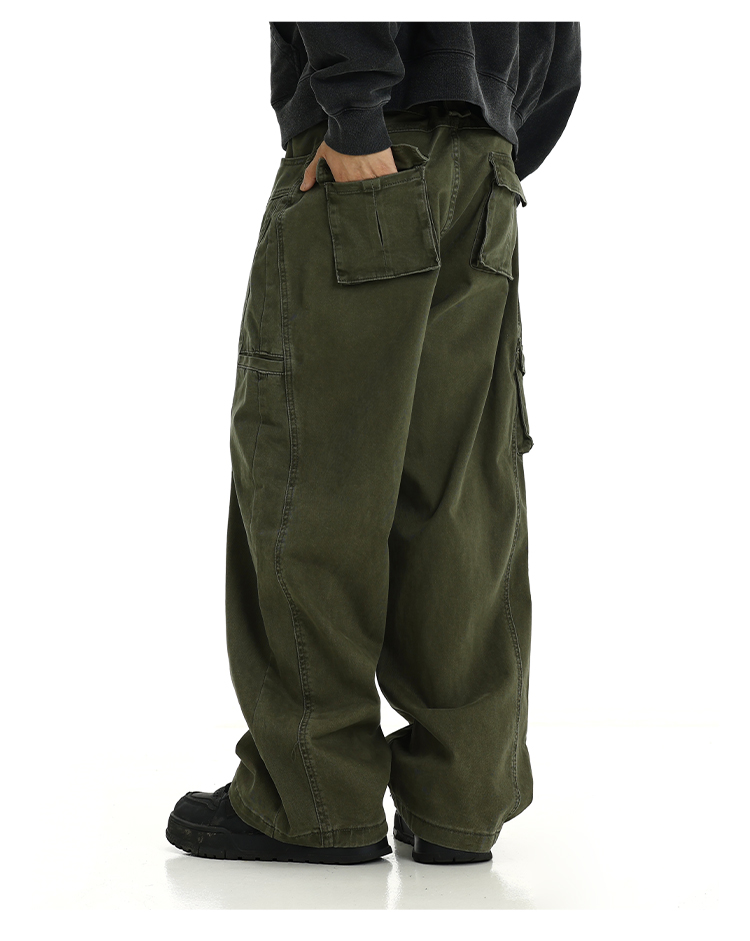 Washed Wide-Leg Straight Cargo Pants WN5794