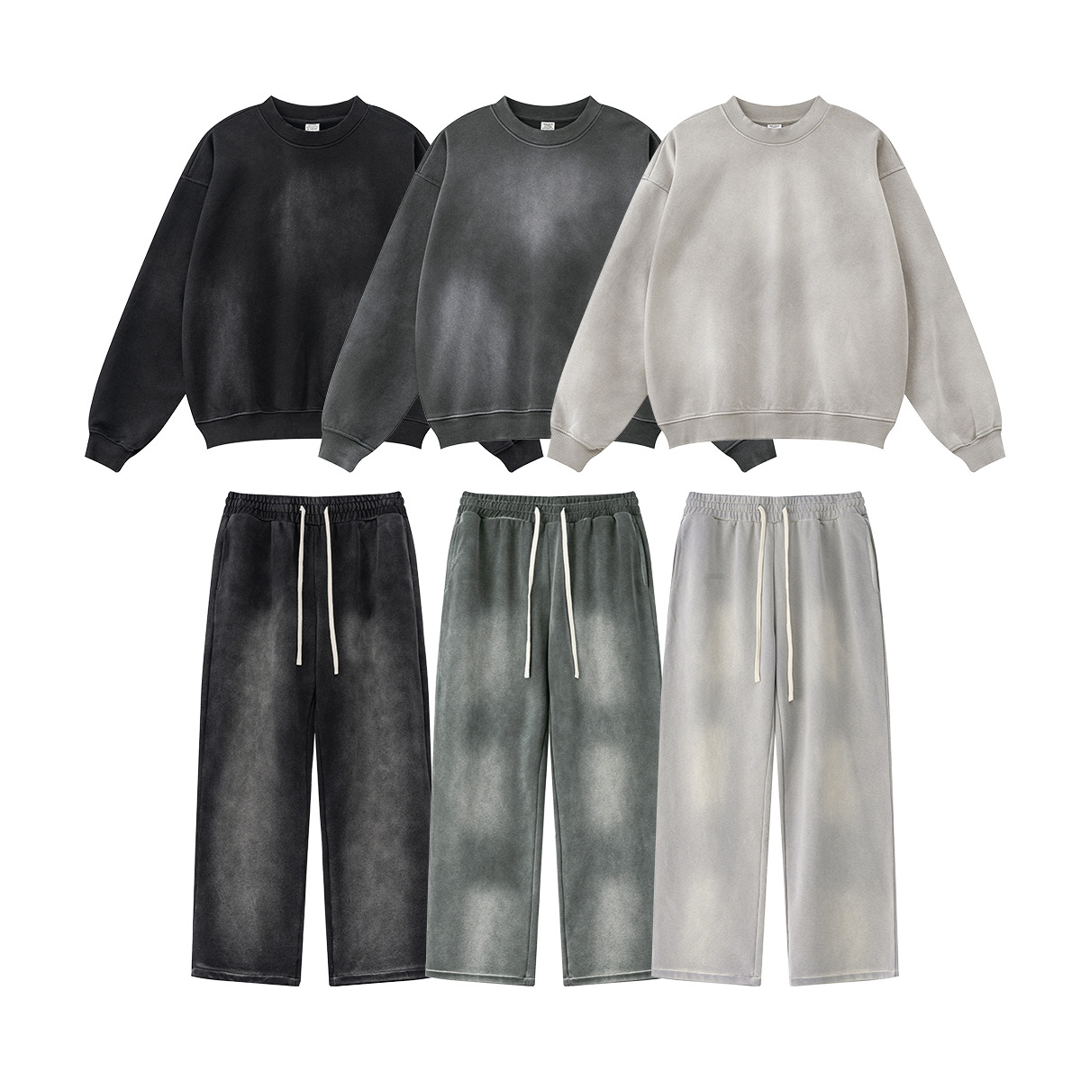 Washed Round Neck Sweatshirt & Wide Leg Sweatpants Setup WN7835