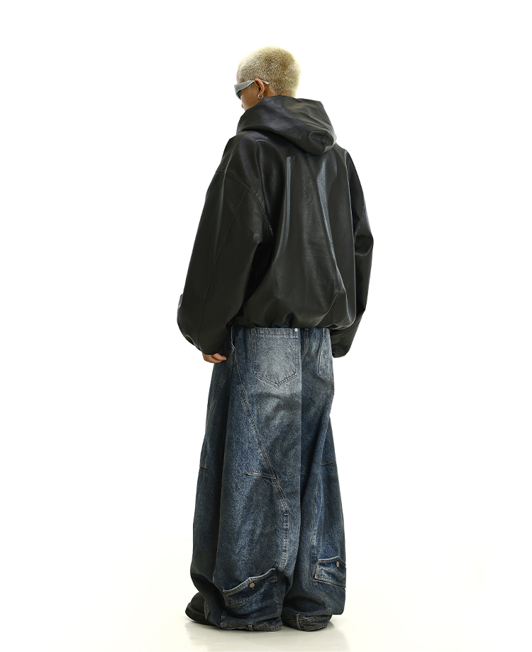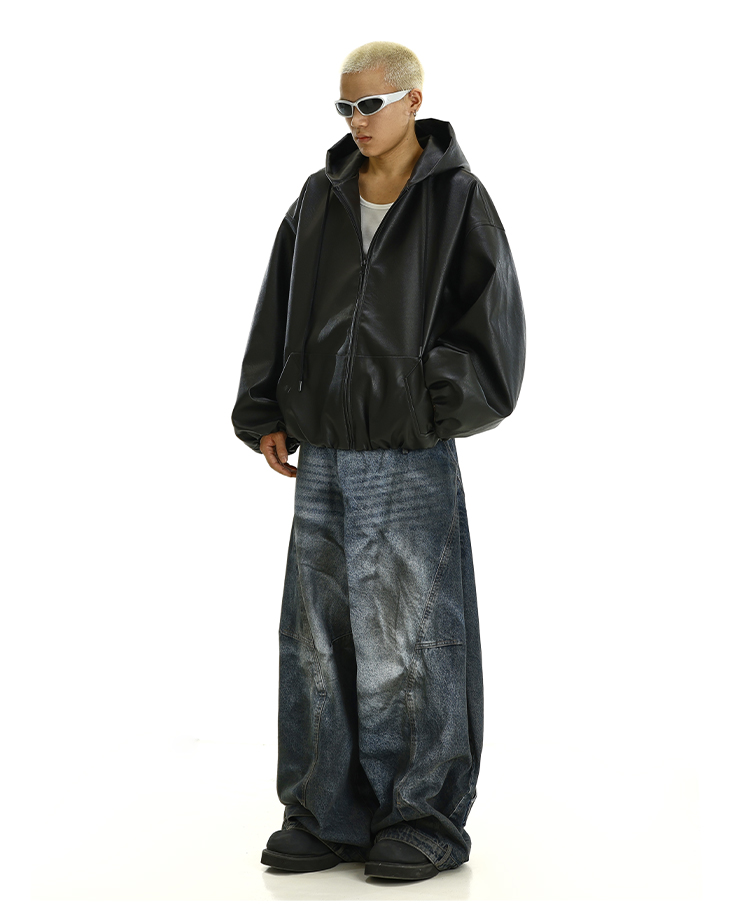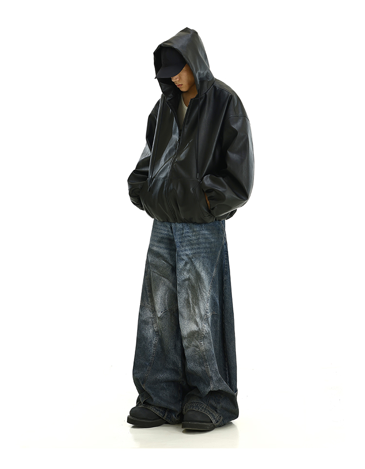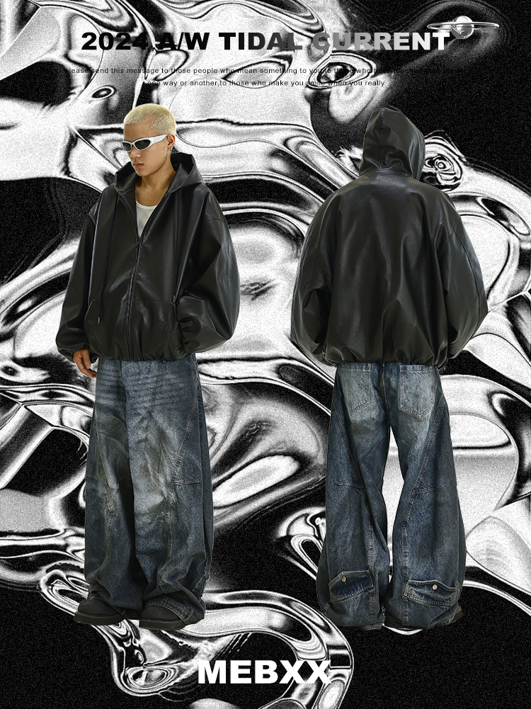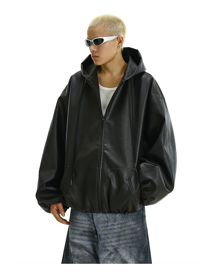 PU Leather Zipper Hooded jacket WN9387