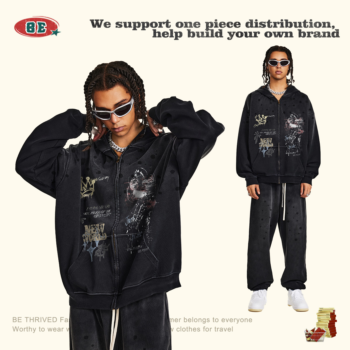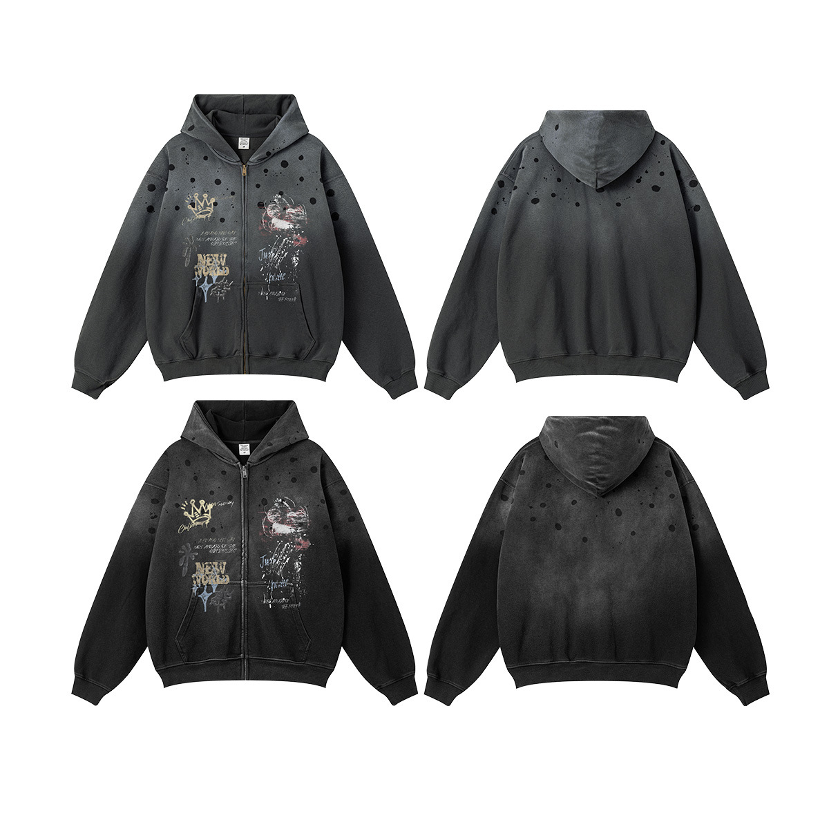 Graffiti Print Oversize Zipper Hoodie WN9936