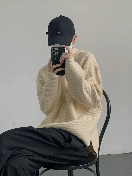 High-Neck Half Zipper Knit Sweater WN9636