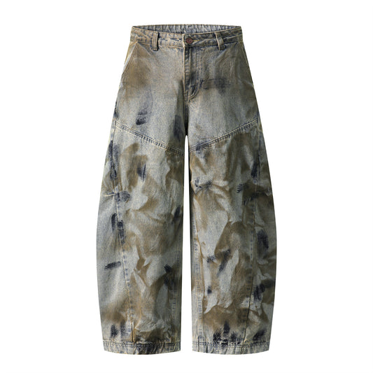 Leopard Wash Multi Pocket Wide Leg Denim Jeans WN22389
