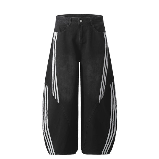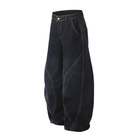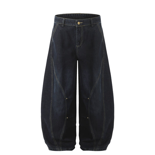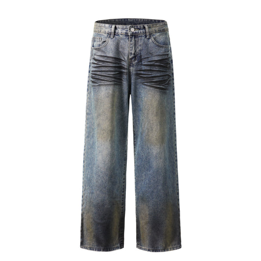 Multi Pocket Wash Damage Wide Leg Denim Jeans WN22388