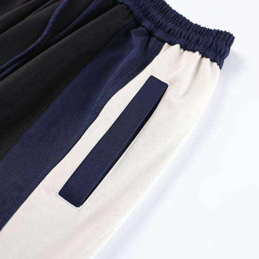 Asymmetrical Pleats Contrasting Washed Pants WN13968