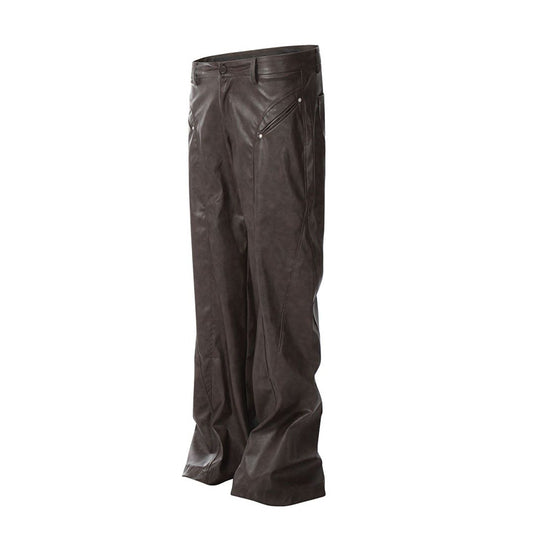 Asymmetric Waxed 3D Structured Motorcycle Style Pants WN13940