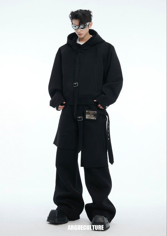 Heavyweight Strap Design Pullover Hoodie & Fake Layered Strap Design Sweatpants Setup WN14943