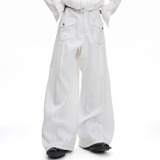 Waxed Heavy PU Leather Straight Cargo Pants WN20973