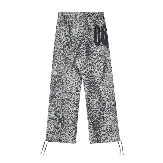Leopard Print Paratrooper Wide-Leg Cargo Pants WN16164