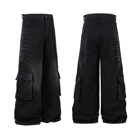 Multi-pocket Washed Wide-leg Cargo Denim Jeans WN15381