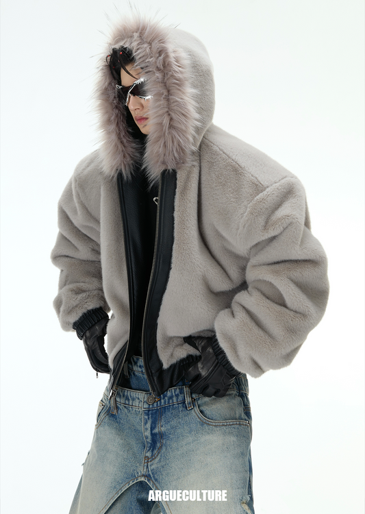 Heavy-duty Fur Patchwork PU Leather Puffer Jacket WN13393