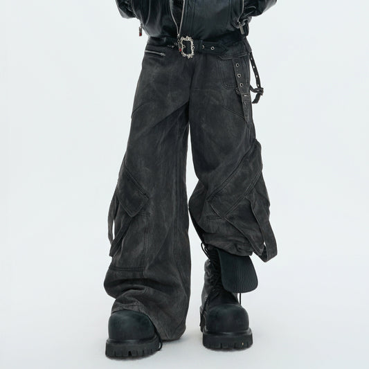 Multi Pocket Wide Leg Denim Jeans WN22630