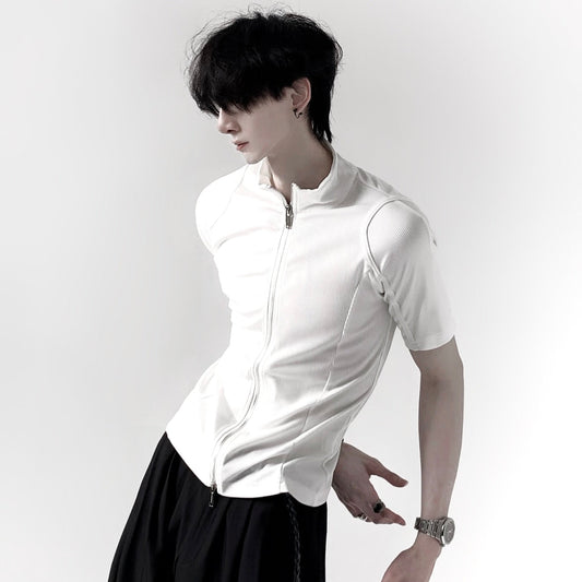 Metal Deconstruction Shoulder-Pad Zipper Short Sleeve Shirt WN20334