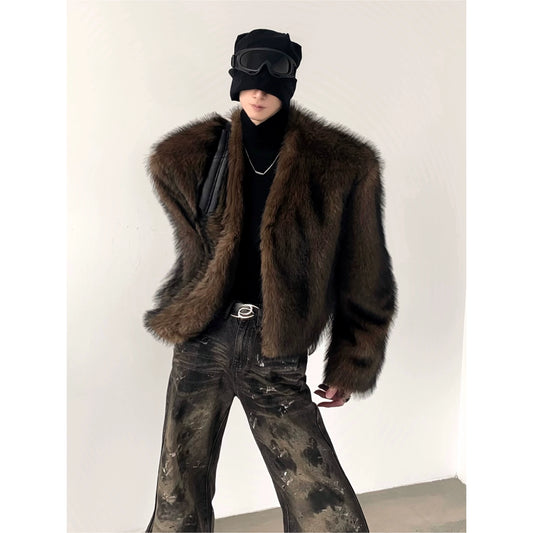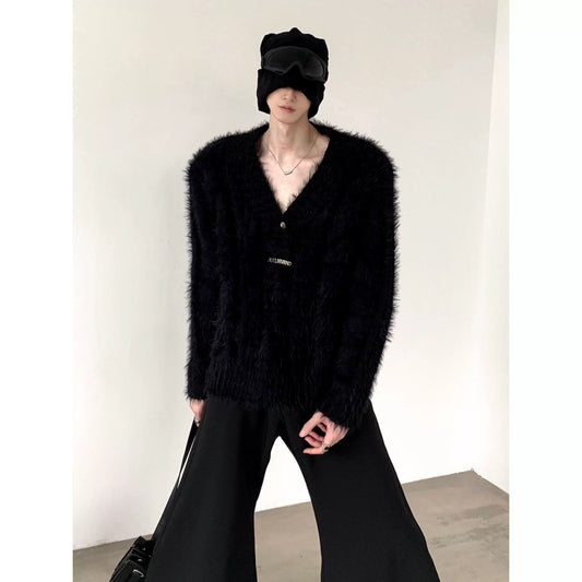 V-neck Fake Fur Oversize Knit Sweater WN9199