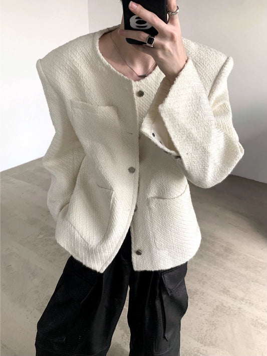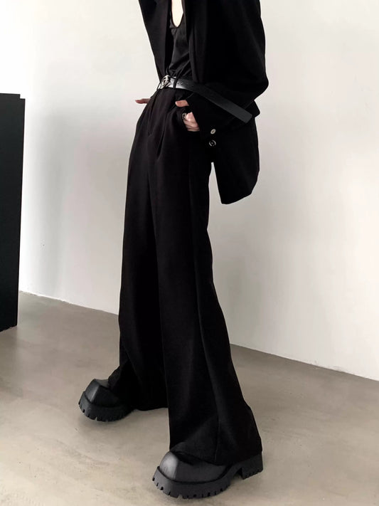 Shoulder Pad Double Collar Tailored Jacket & Wide-Leg Straight Trousers Setup WN9192