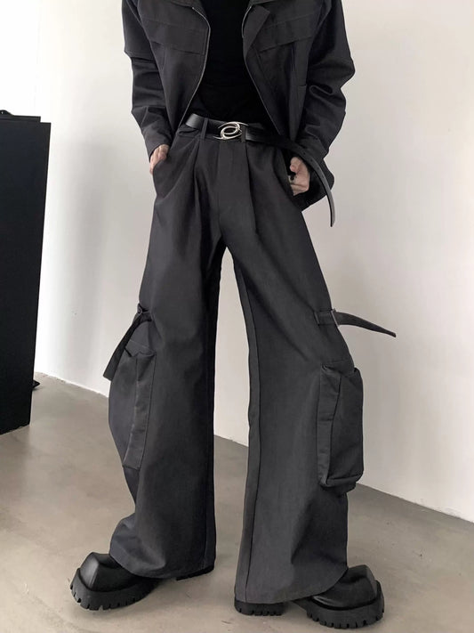 Oversize Shoulder Pad Zipper Jacket & Wide Leg Cargo Pants Setup WN9183
