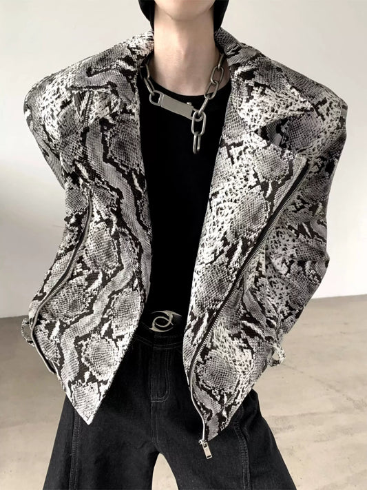 Snakeskin PU Leather Shoulder Pad Short Jacket WN9195