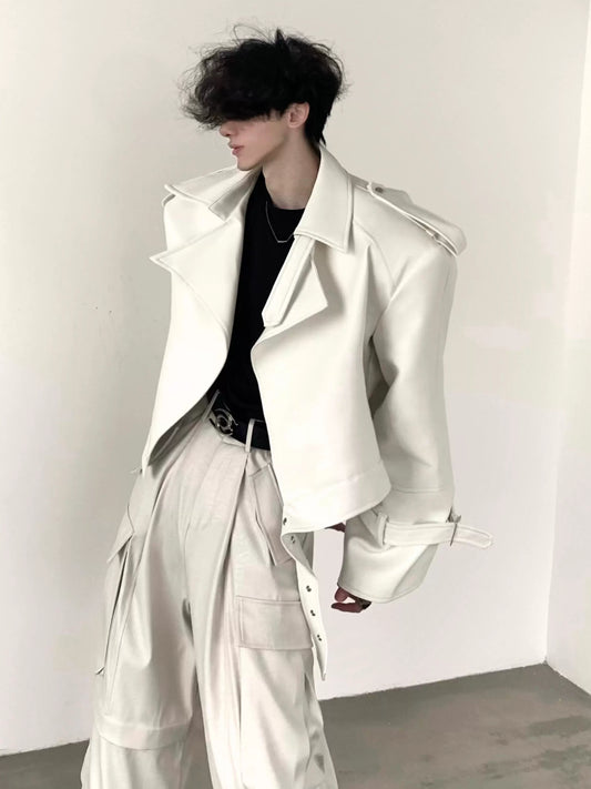 Shoulder Pad Oversize PU Leather Coat WN9170