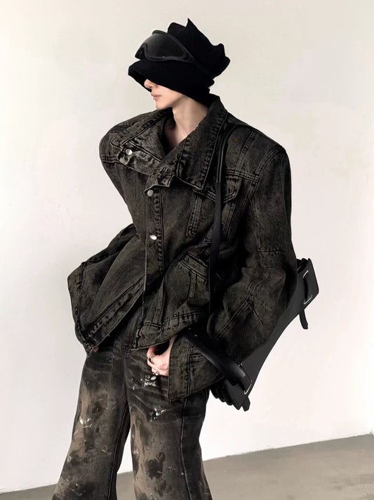 Washed Shoulder Pad Denim Jacket & Wide Leg Denim Jeans Setup WN9188