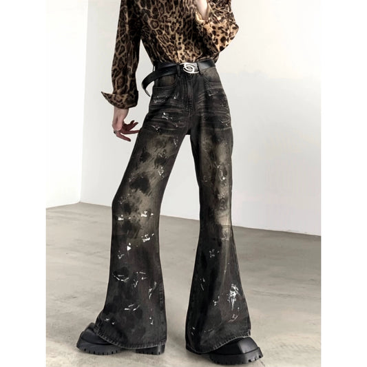 Pleats Washed Wide-leg Denim Jeans WN9194