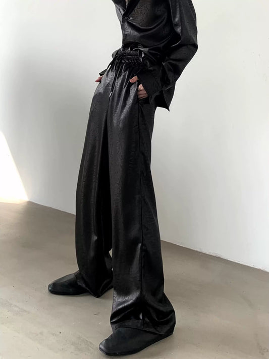 Silk Ice Fabric Long Sleeve Shirt & Straight Pants Setup WN9189