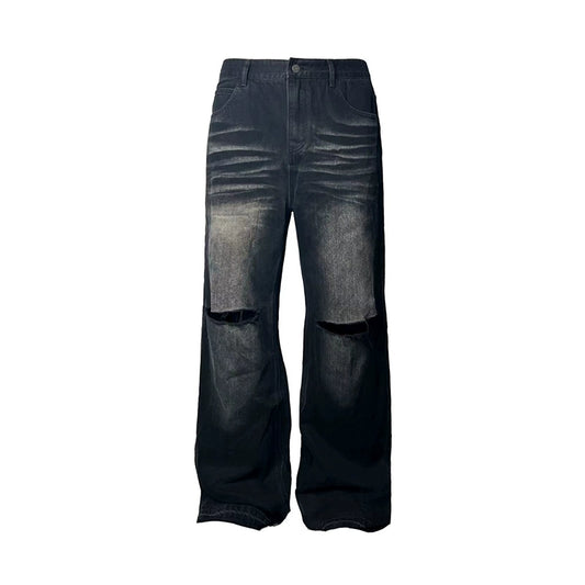 Water Wash Damage Wide Leg Denim Jeans WN8530