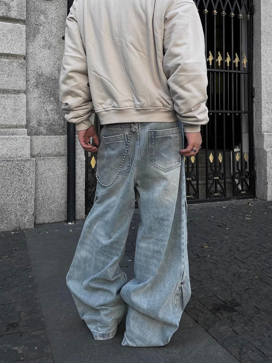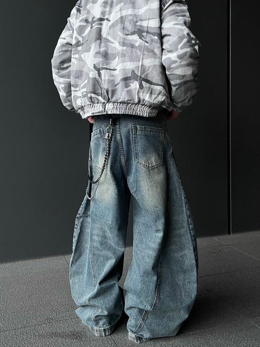 Washed Wide Leg Denim Jeans WN9412