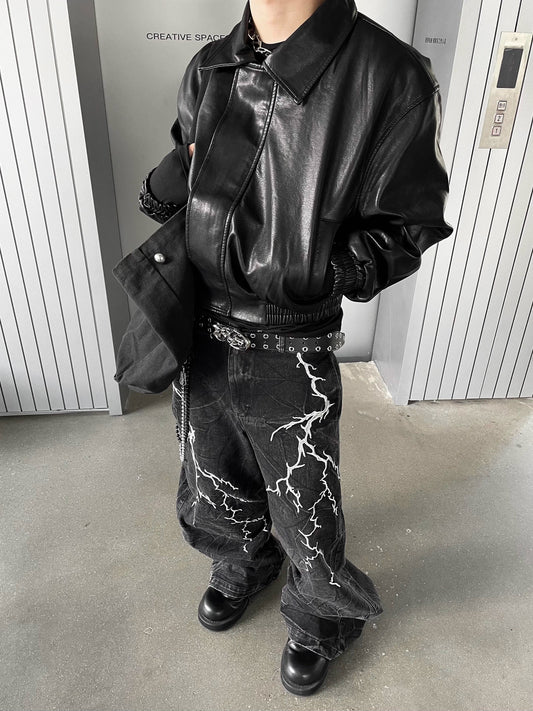 Embroidery Lightning Wide Leg Denim Jeans WN8256
