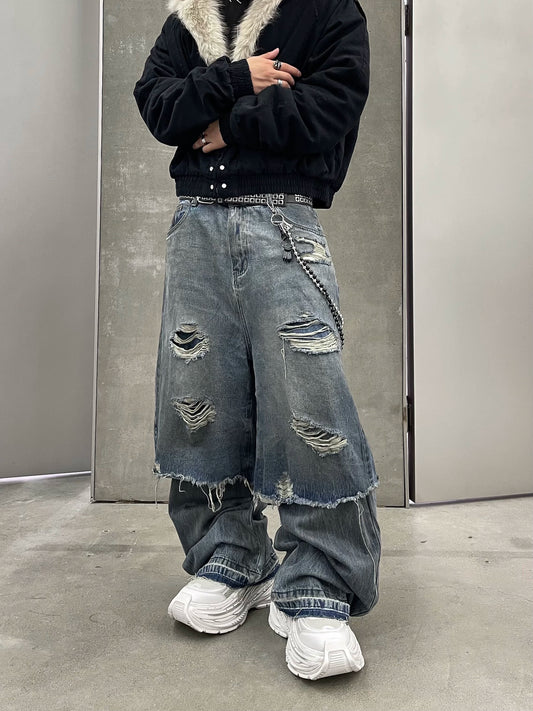 Damage Wide-Leg Straight Denim Jeans WN9920