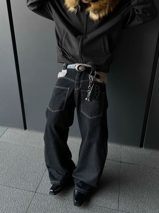 Patchwork Wide Leg Straight Denim Jeans WN9400