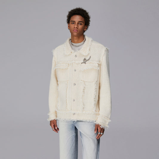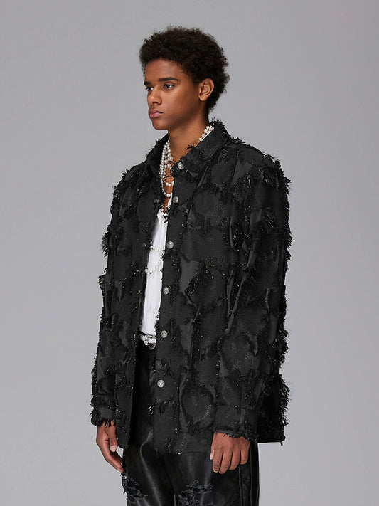 Textured Fringe Raw Edge Oversize Jacket WN17857