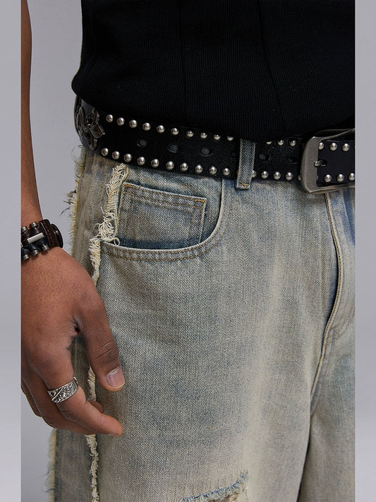 Washed Patchwork Raw Hem Denim Half Jeans WN17890