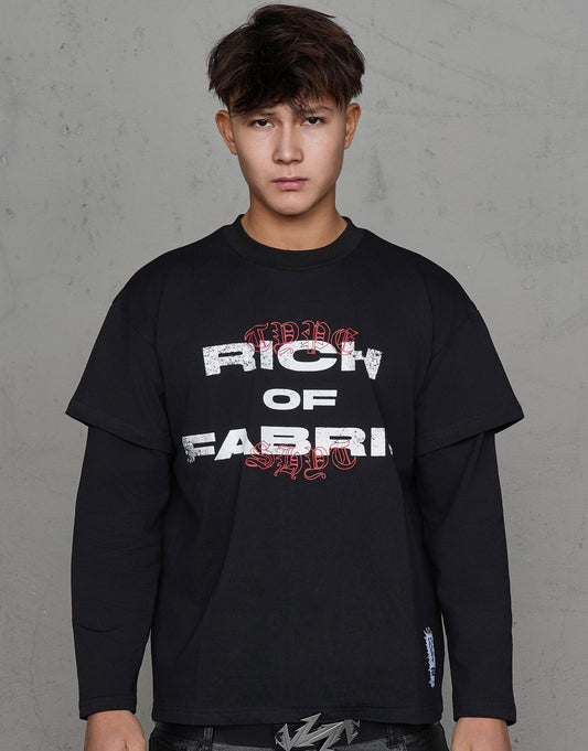 Fake Layered Embroidery Label Long Sleeve T-Shirt WN21008