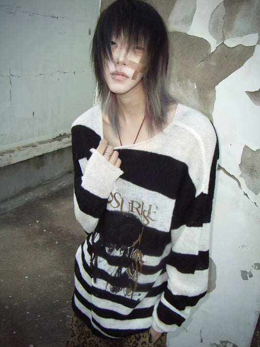 Graphic Letter Print Stripe Knit Sweater WN20897