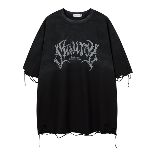 Washed Rivet Design Letter Print Short Zipper Hoodie WN21917