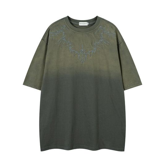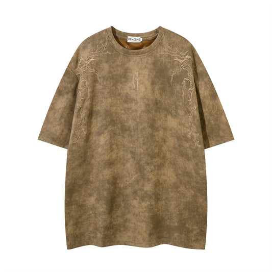 Washed Heavy Embroidery Design Oversize Short Sleeve T-Shirt WN15079