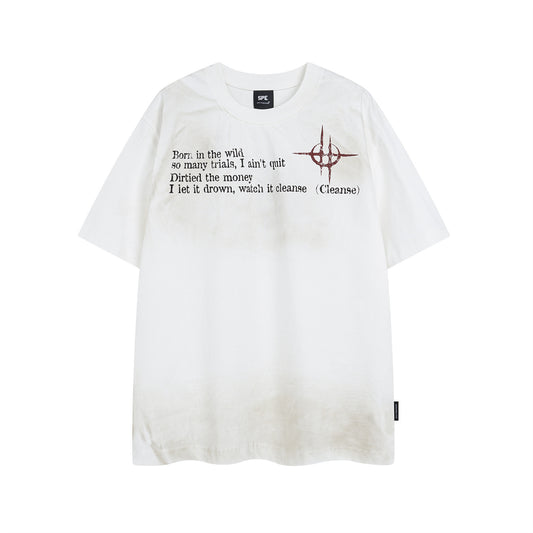 Ink Splash Letter Embroidery Oversize Short Sleeve T-Shirt WN15073