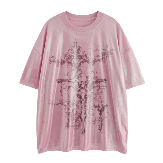 3D Embroidery Suede Oversize Short Sleeve T-Shirt WN15082