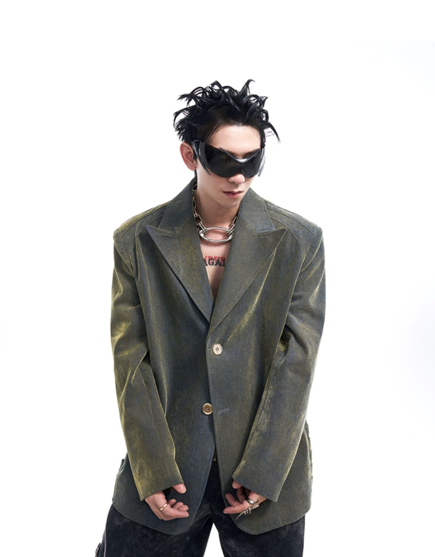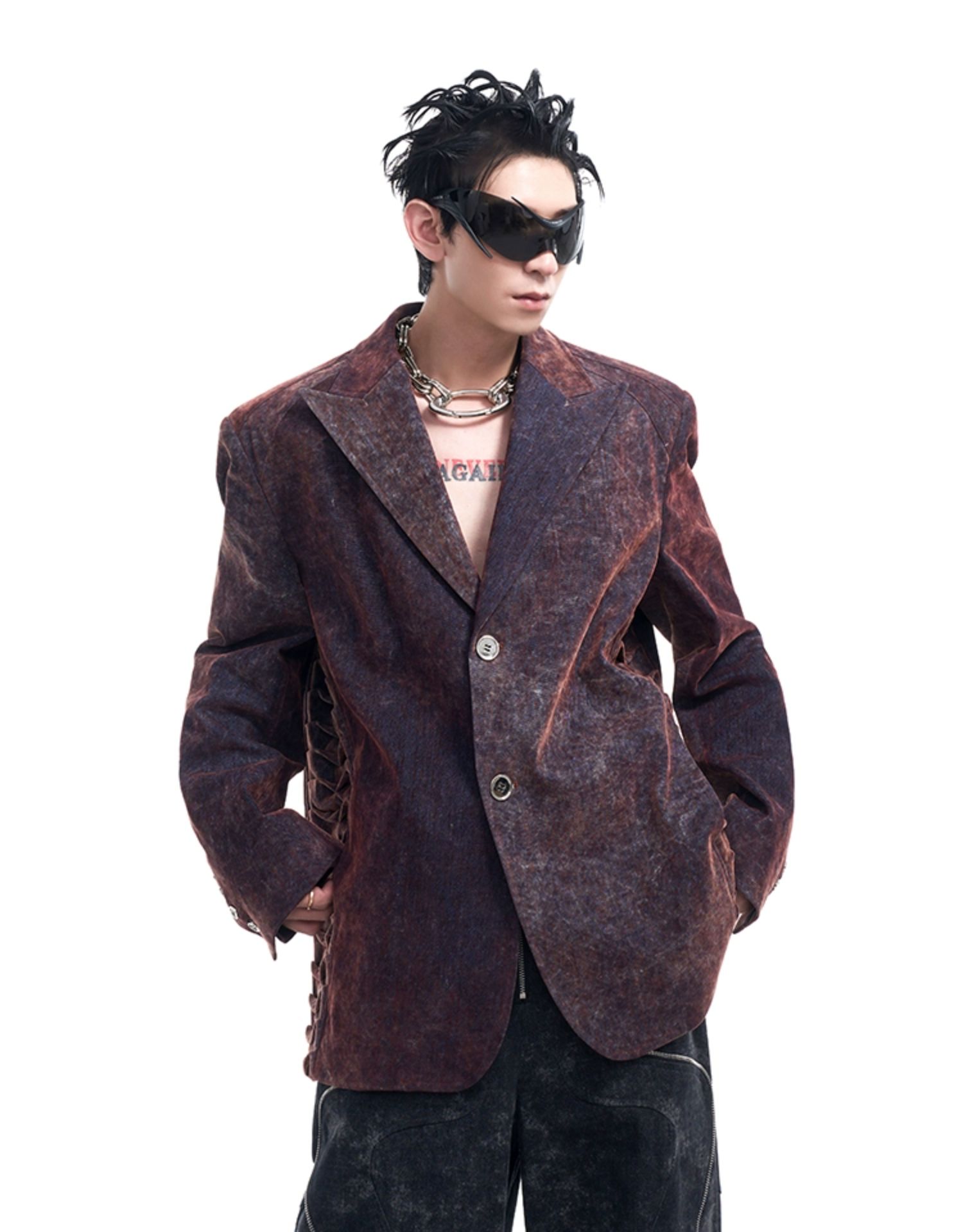 Velvet Spine Detail Denim Tailored Jacket WN10171