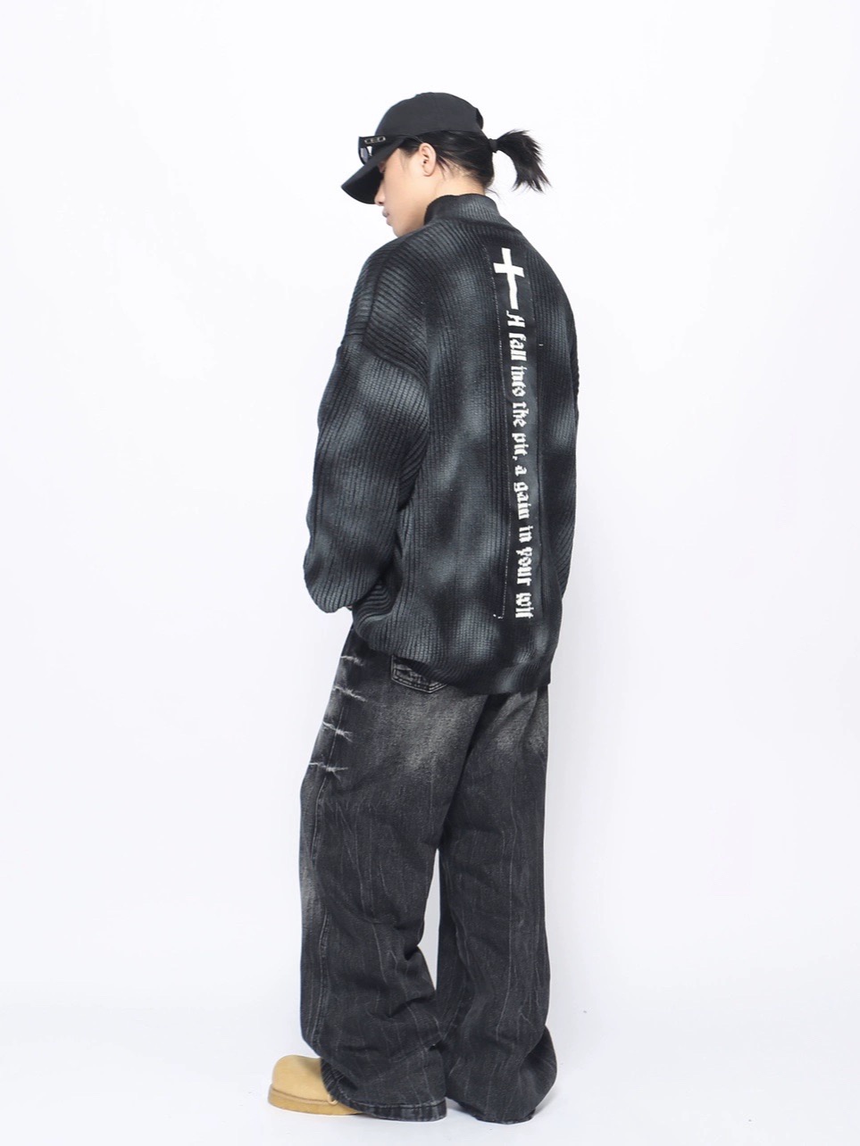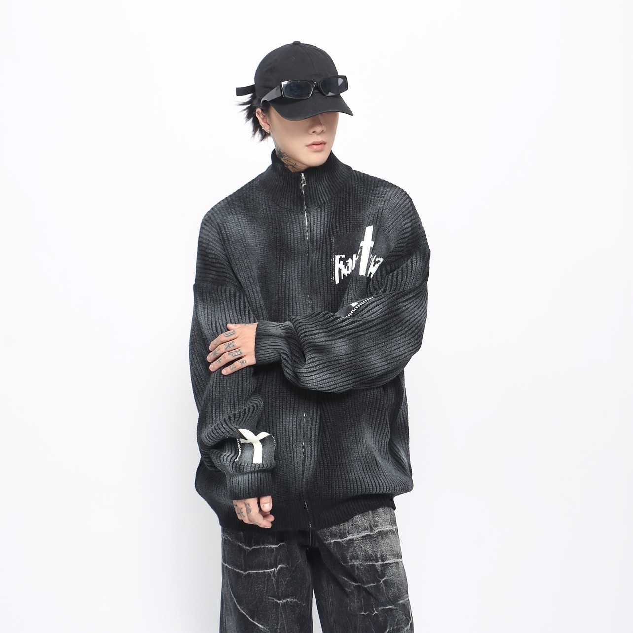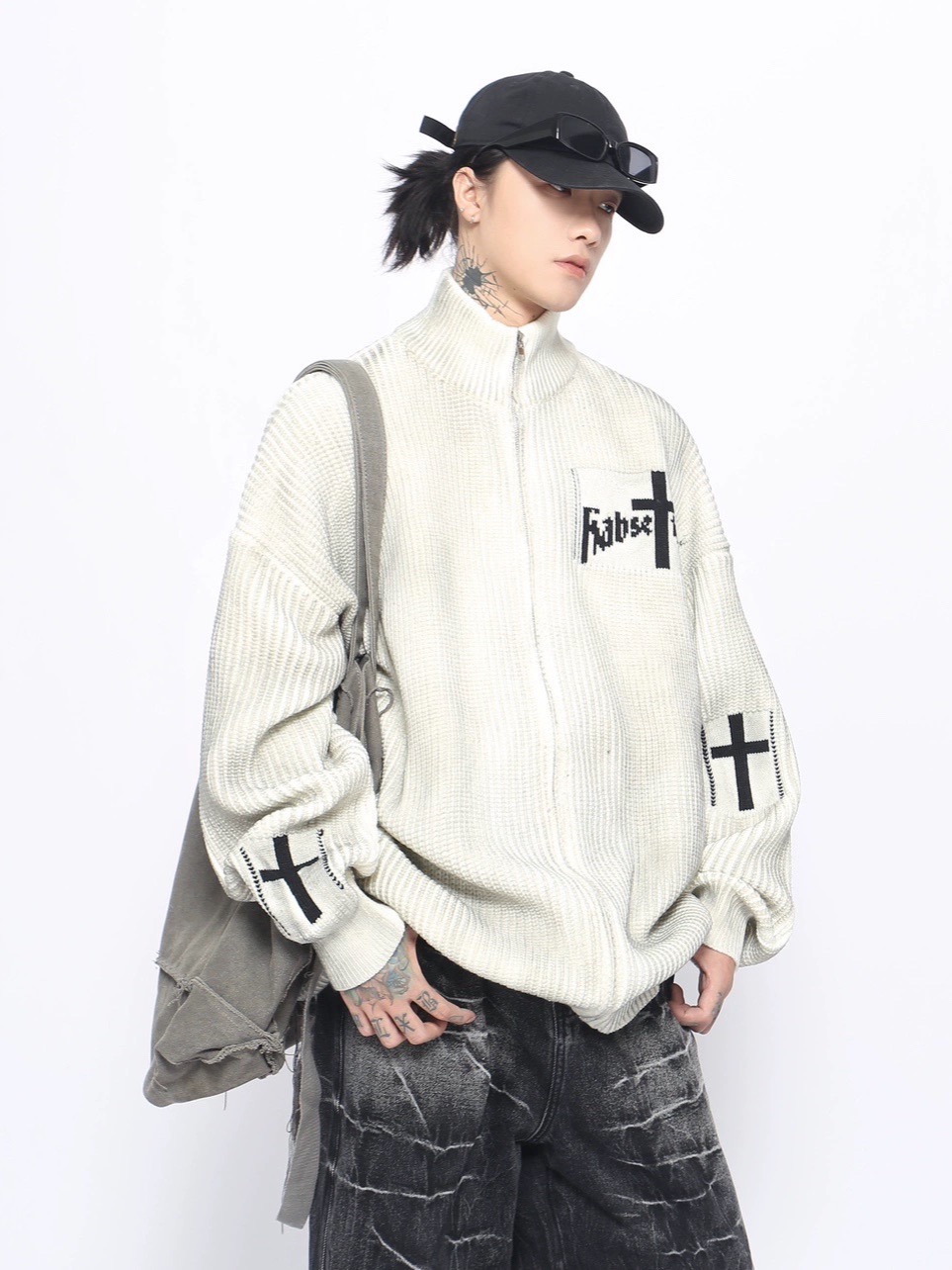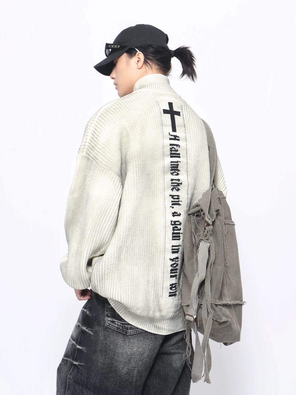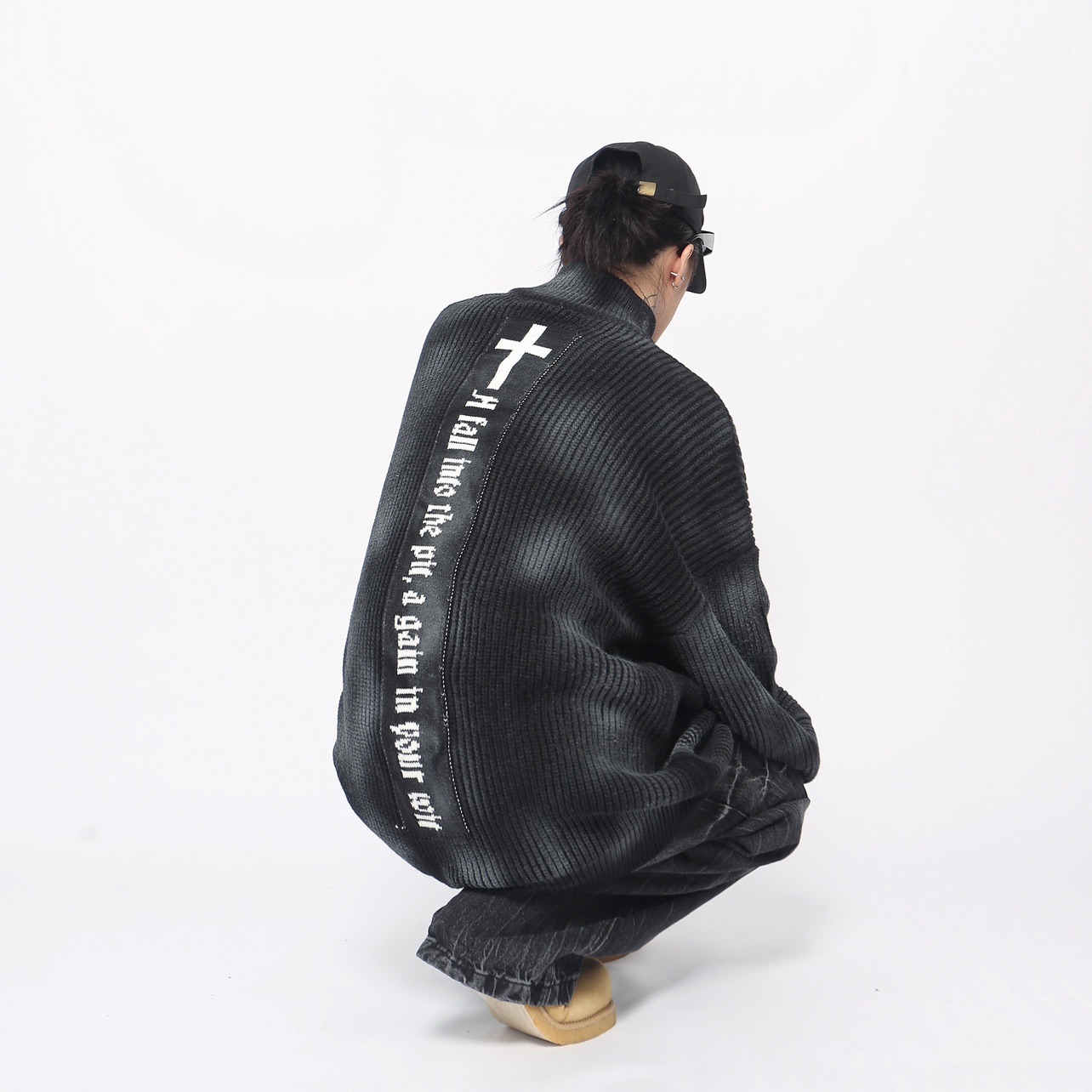 Washed High-Neck Oversize Knit Cardigan WN10903