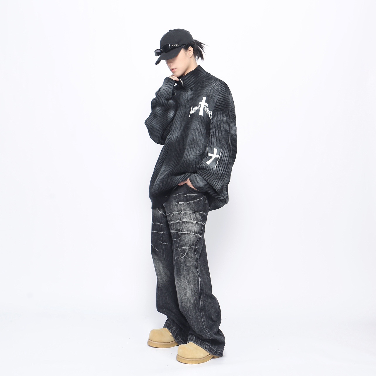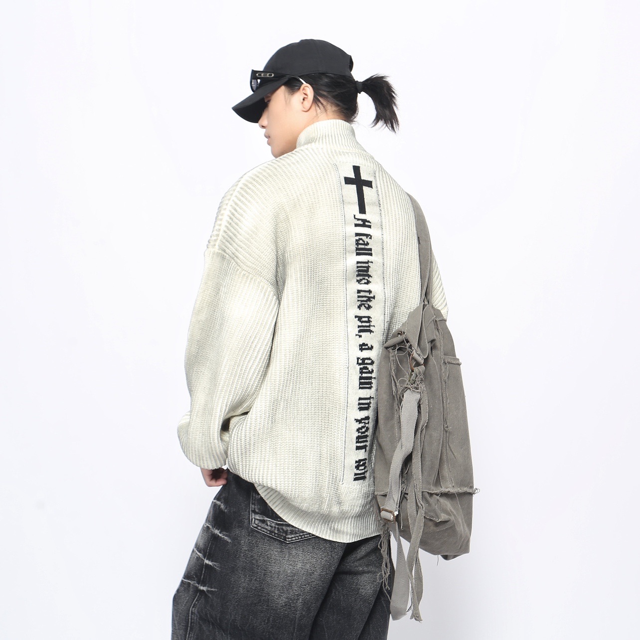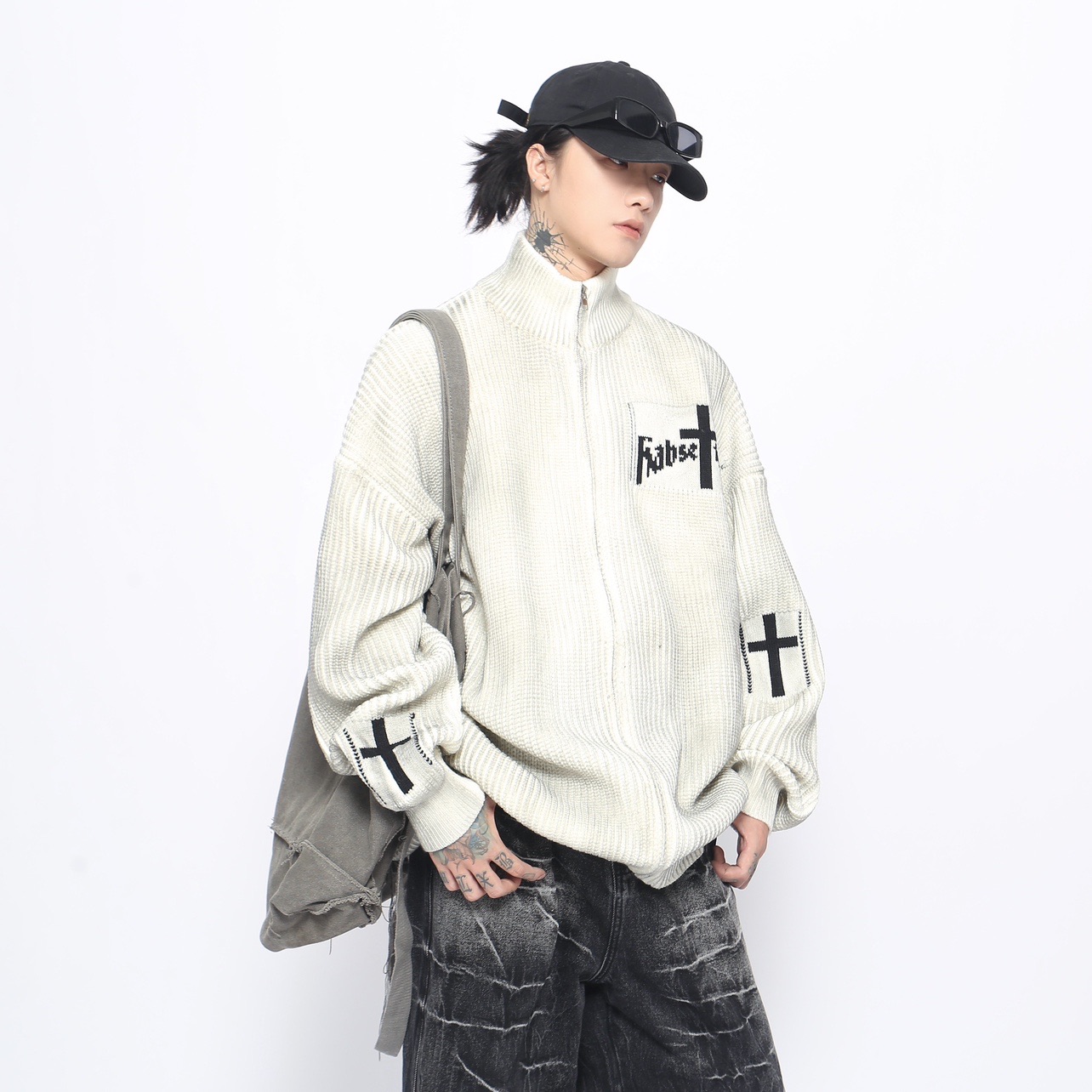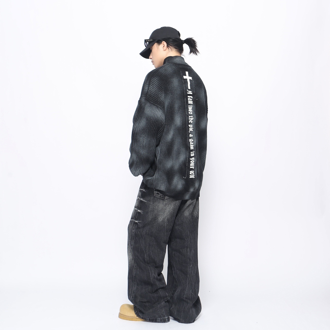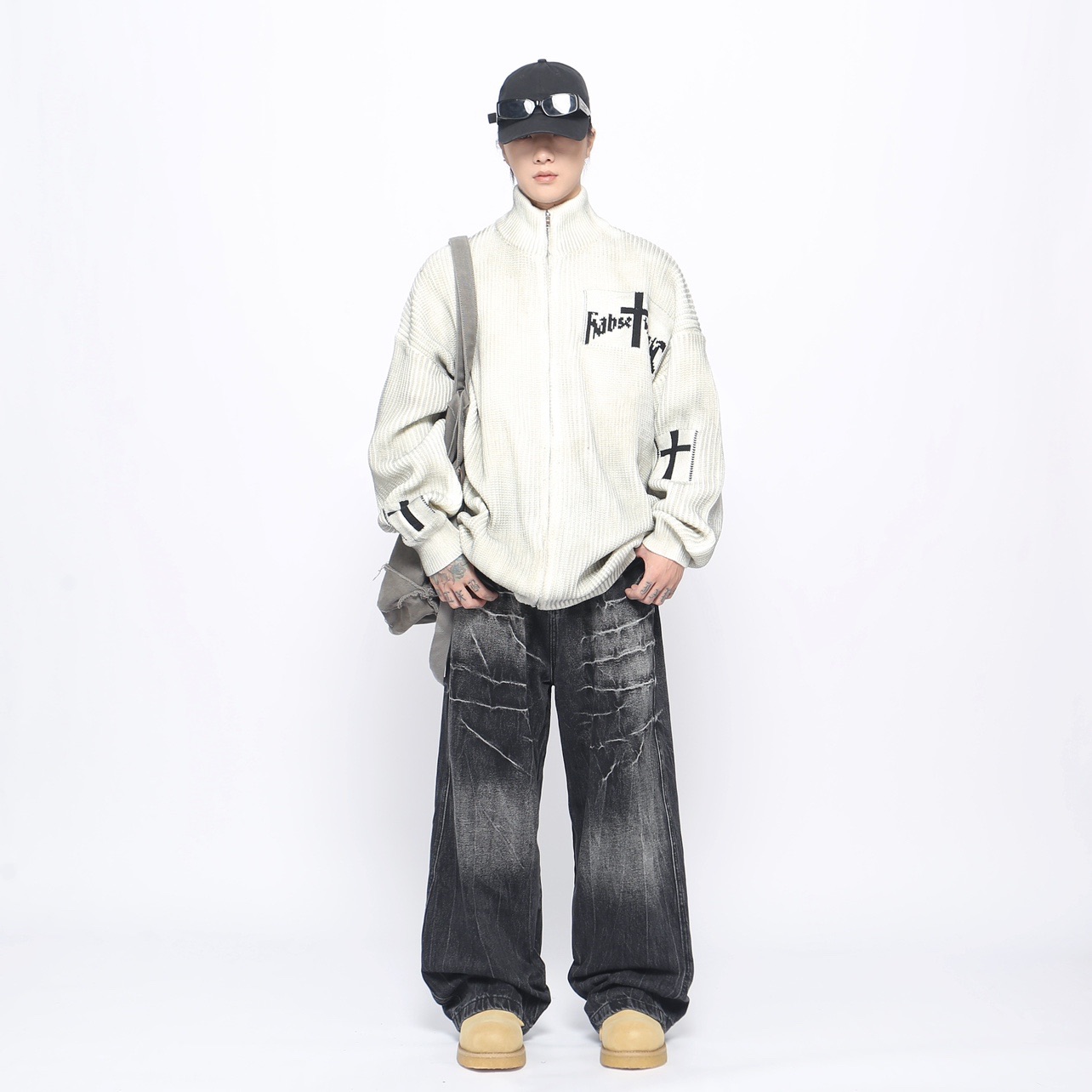 Washed High-Neck Oversize Knit Cardigan WN10903