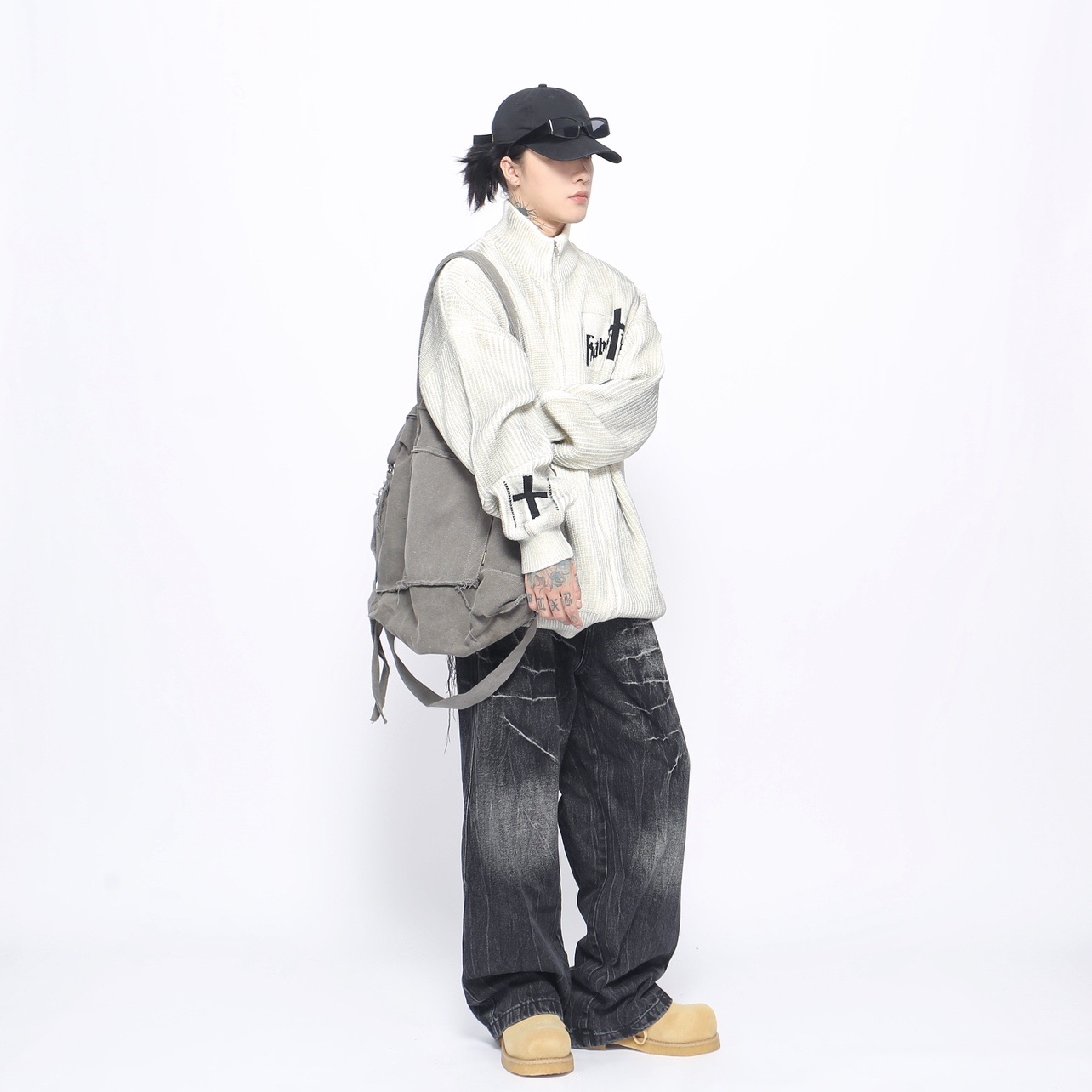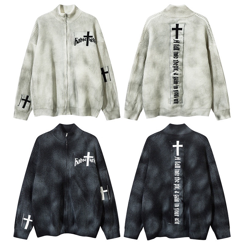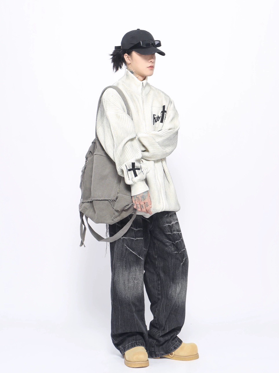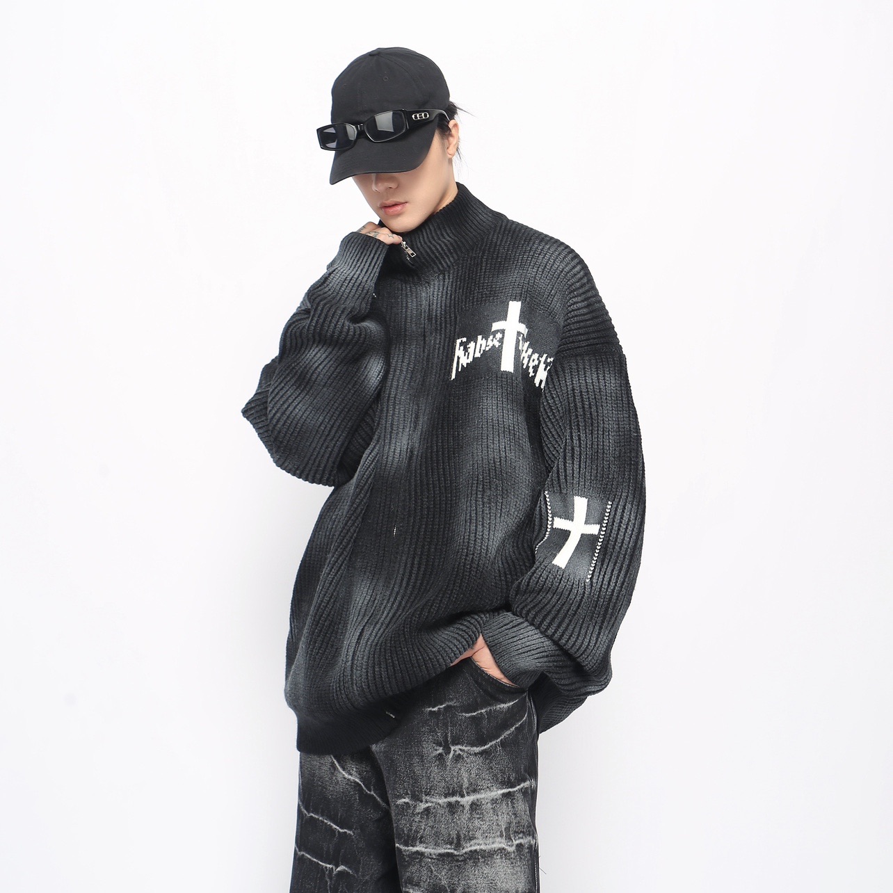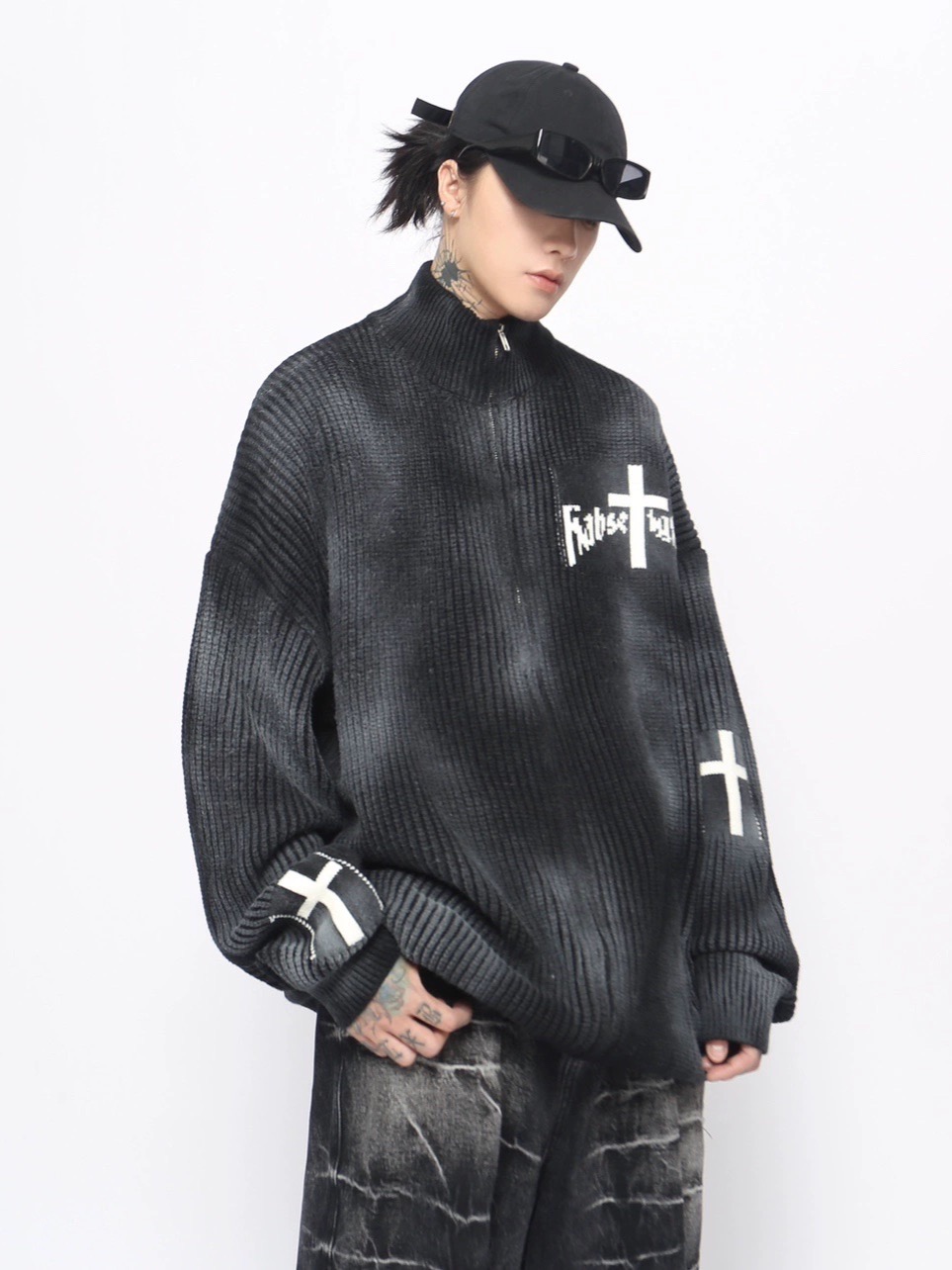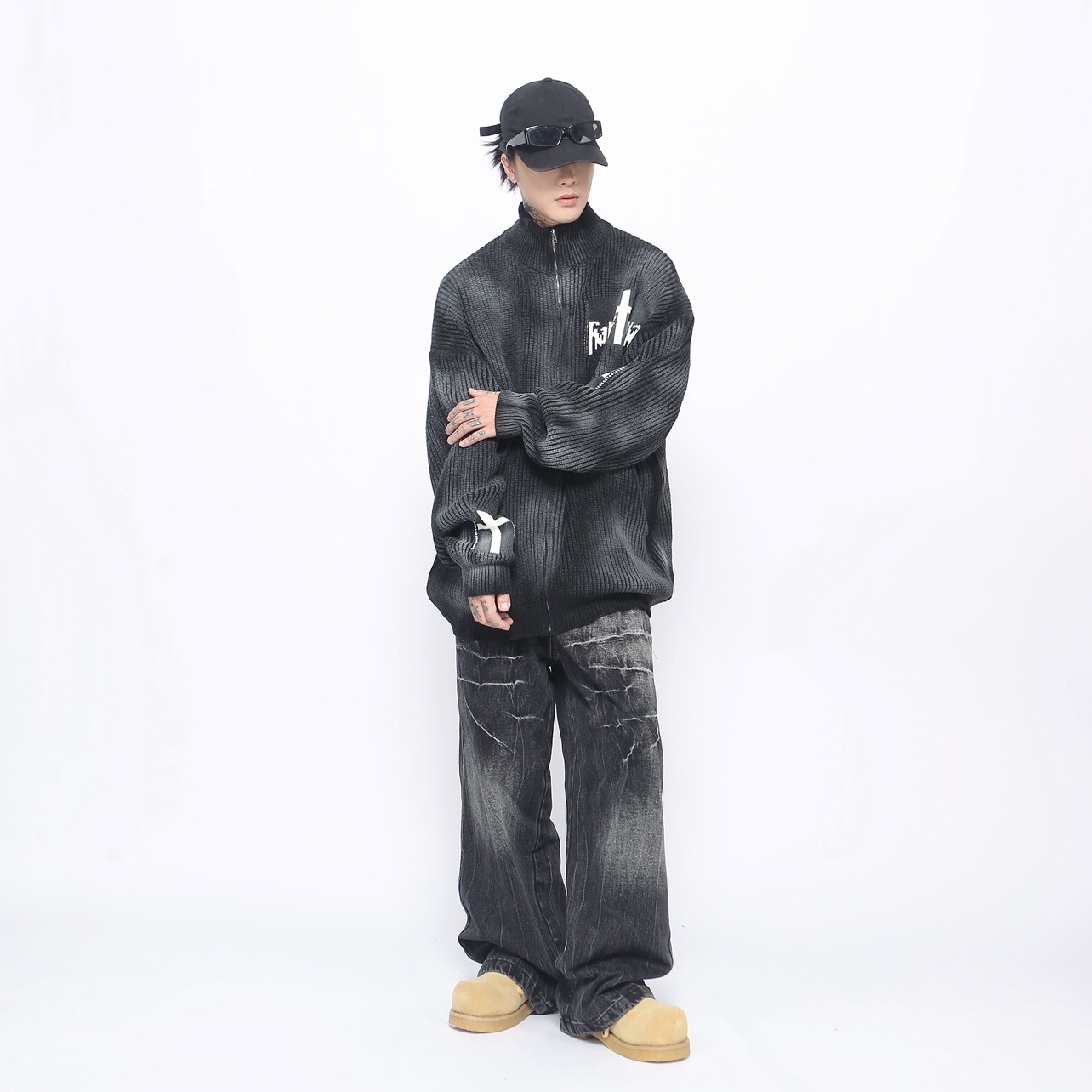 Washed High-Neck Oversize Knit Cardigan WN10903