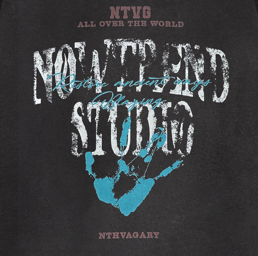 Washed Spray Paint Letter Print Oversize Pullover Hoodie WN11461