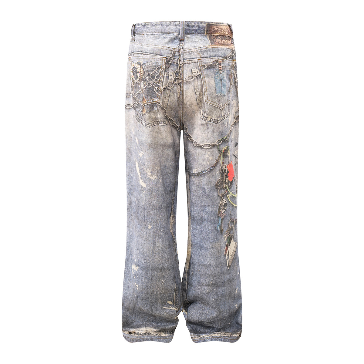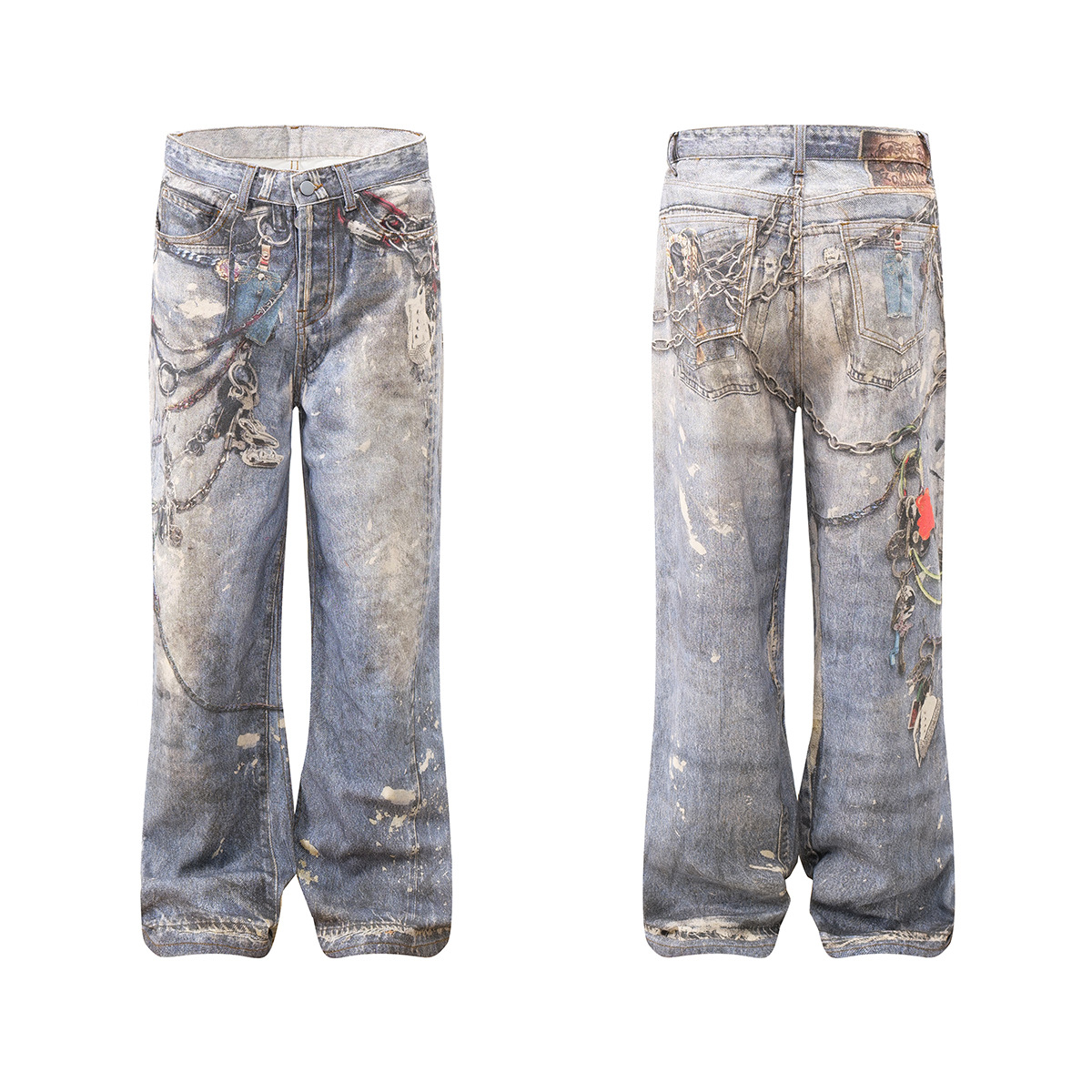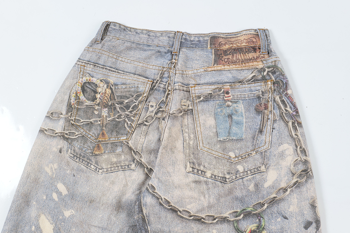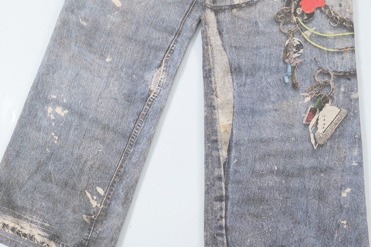 Washed Print Straight Denim Jeans WN12660