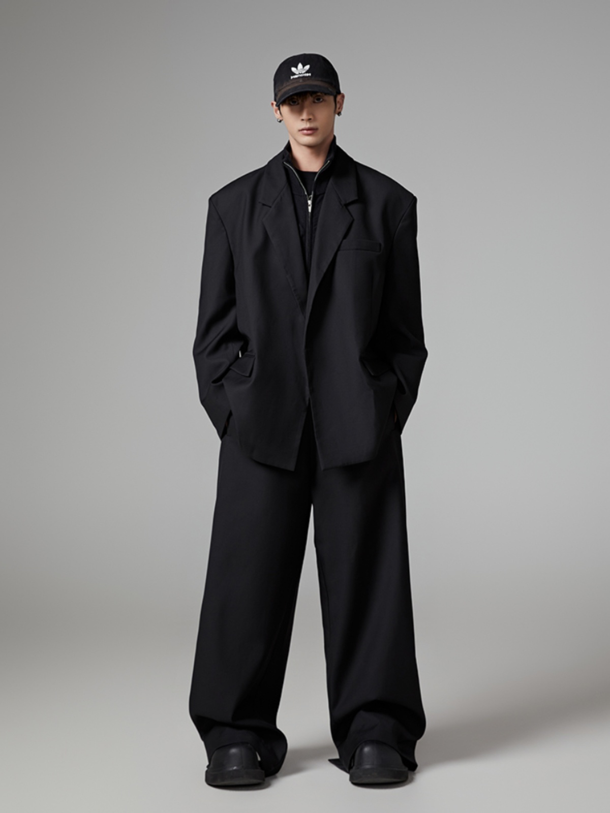 Stitch Design Oversize Tailored Jacket & Wide-leg Trousers Setup WN13378