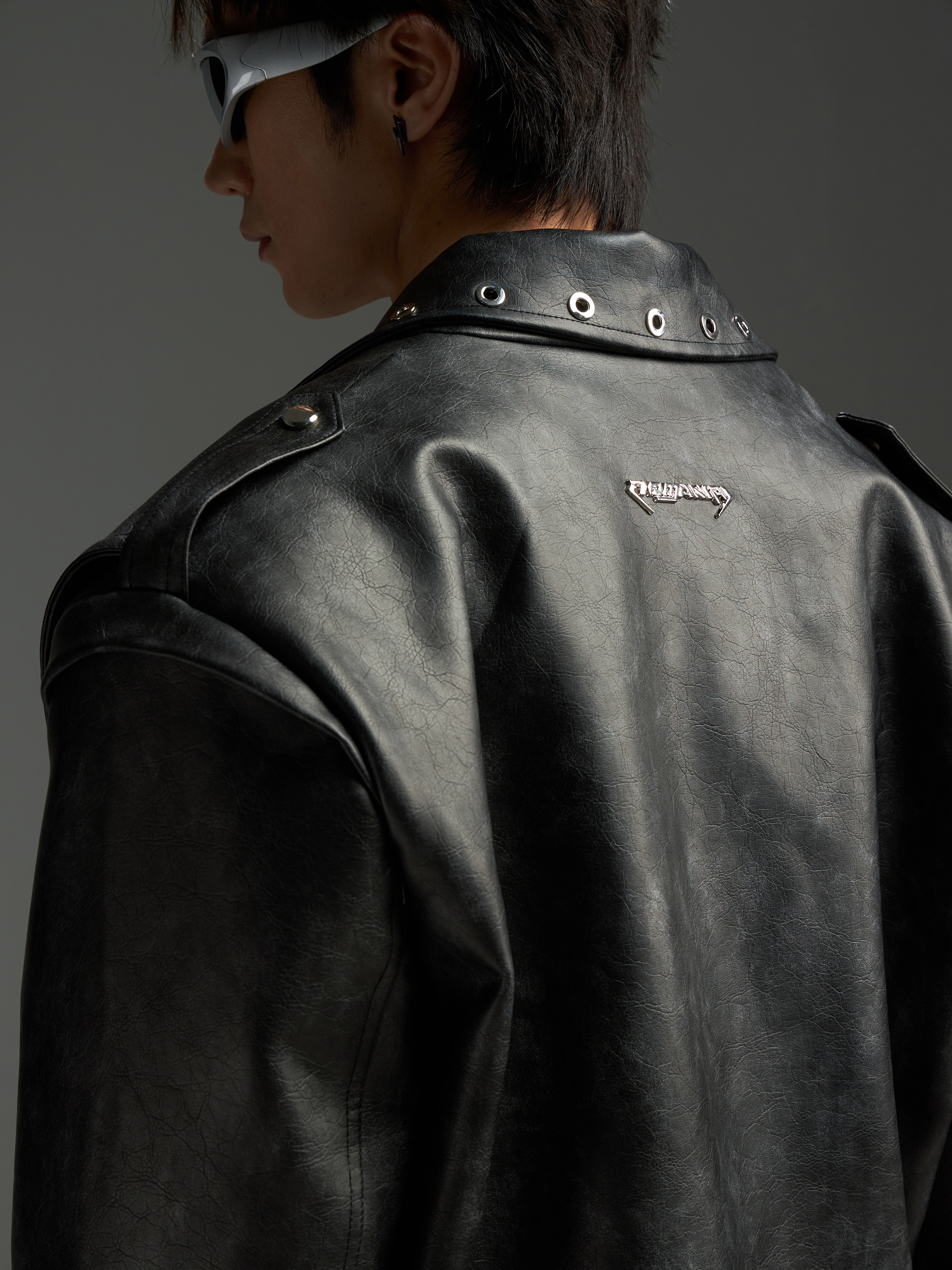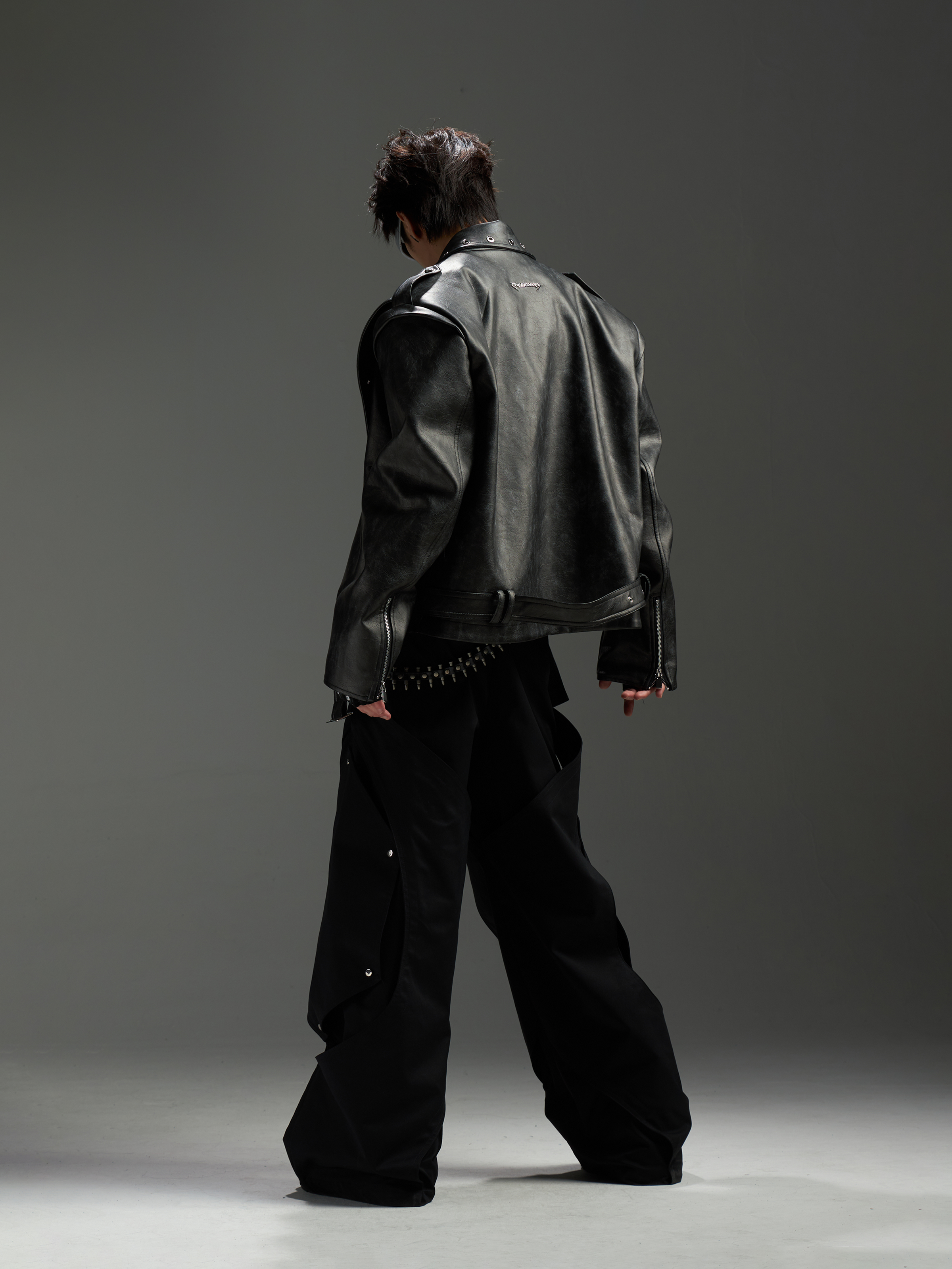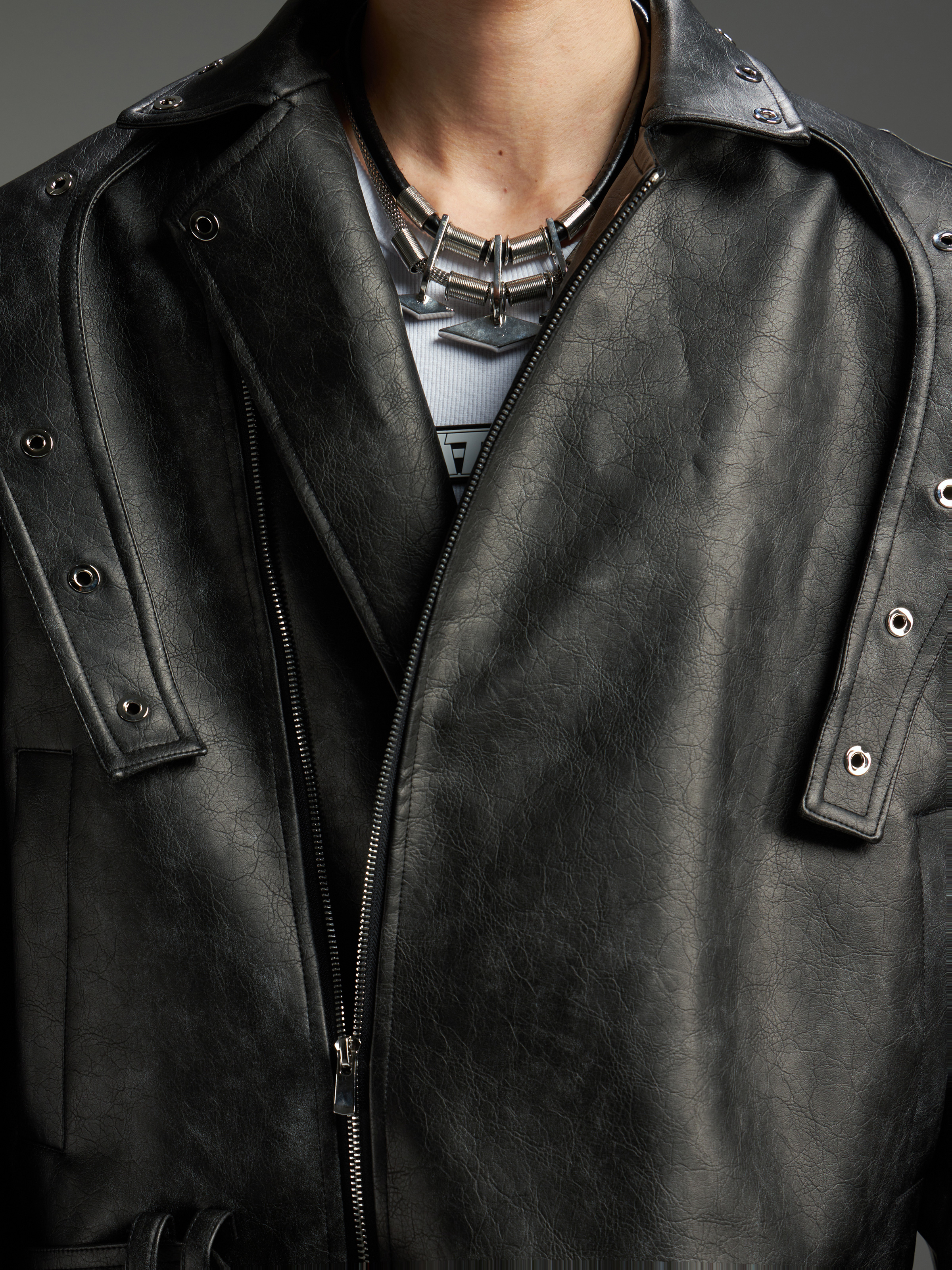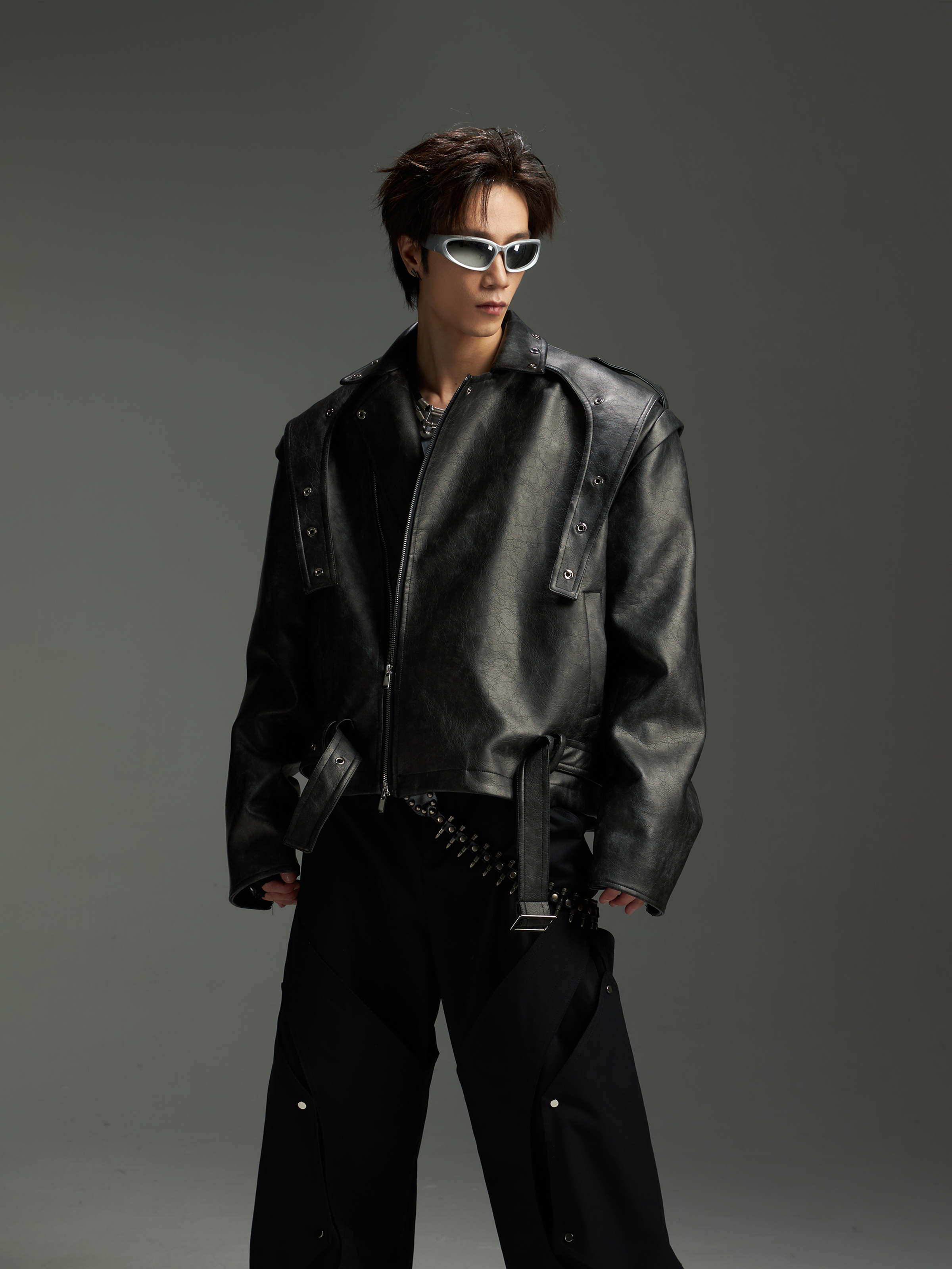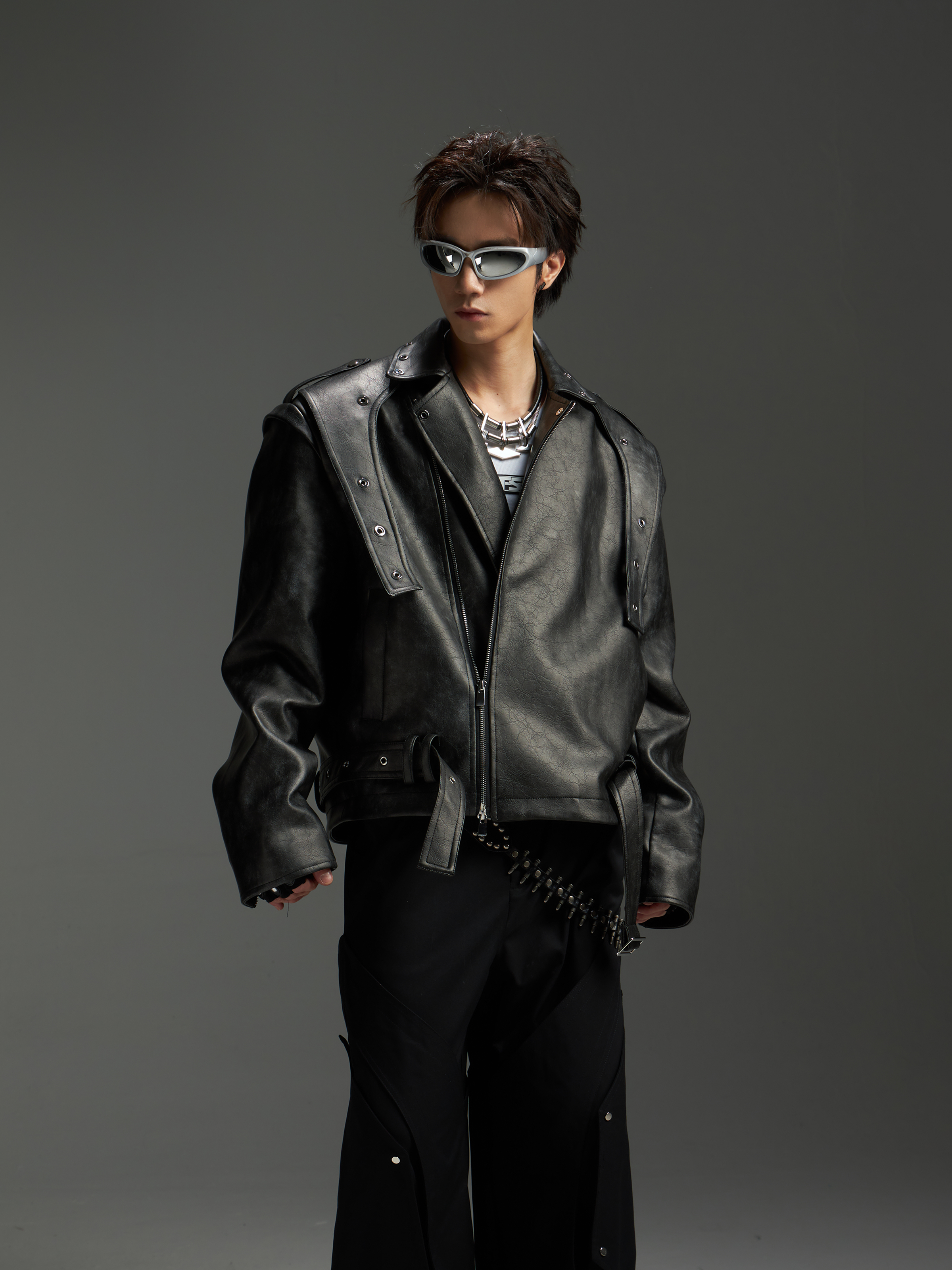 Washed Patchwork PU Leather Jacket WN13456