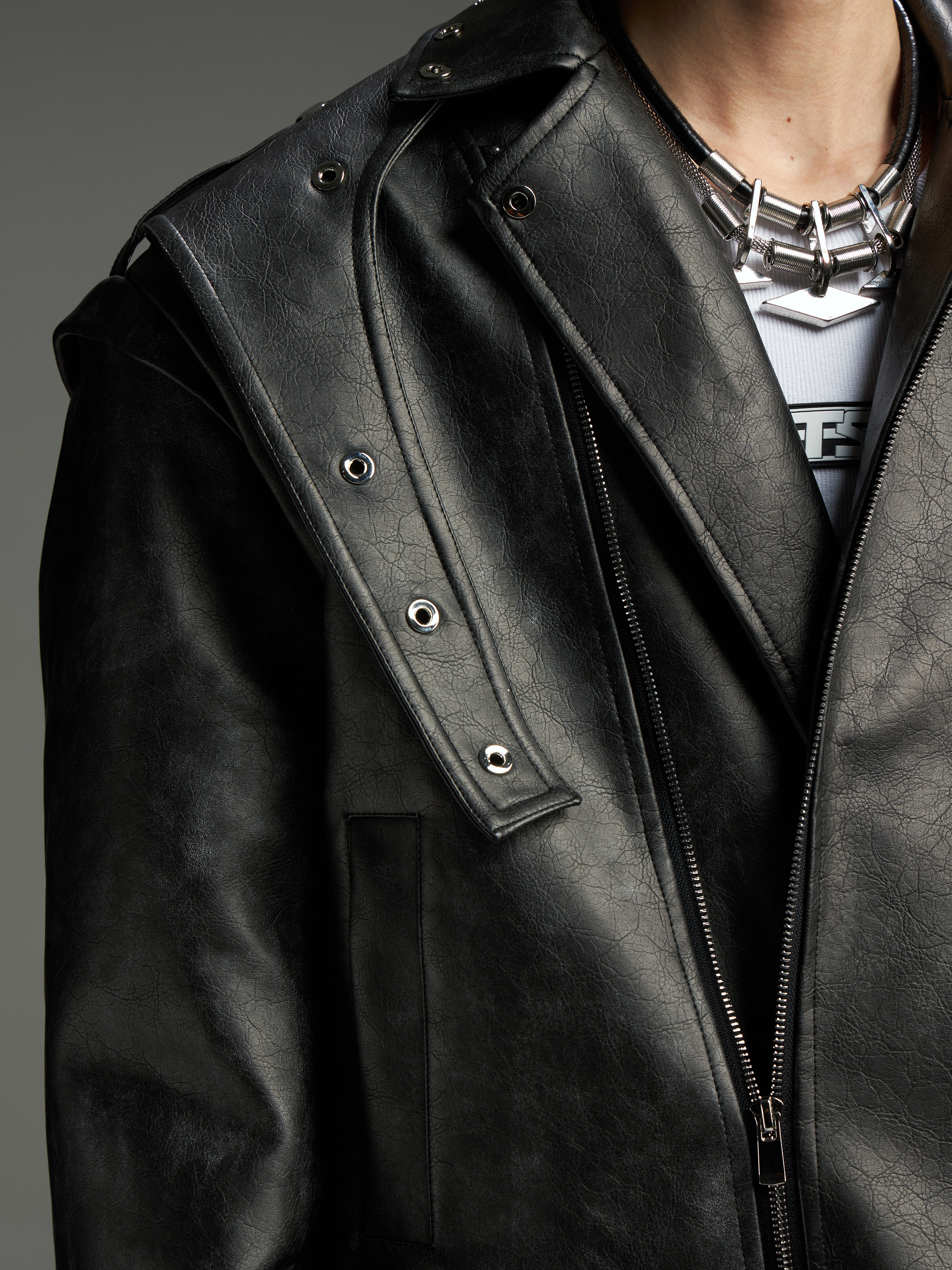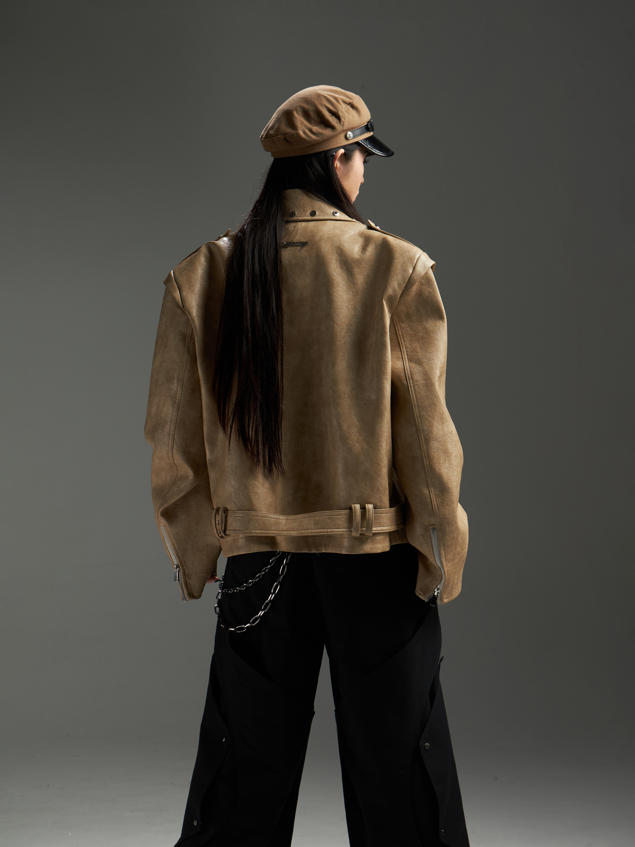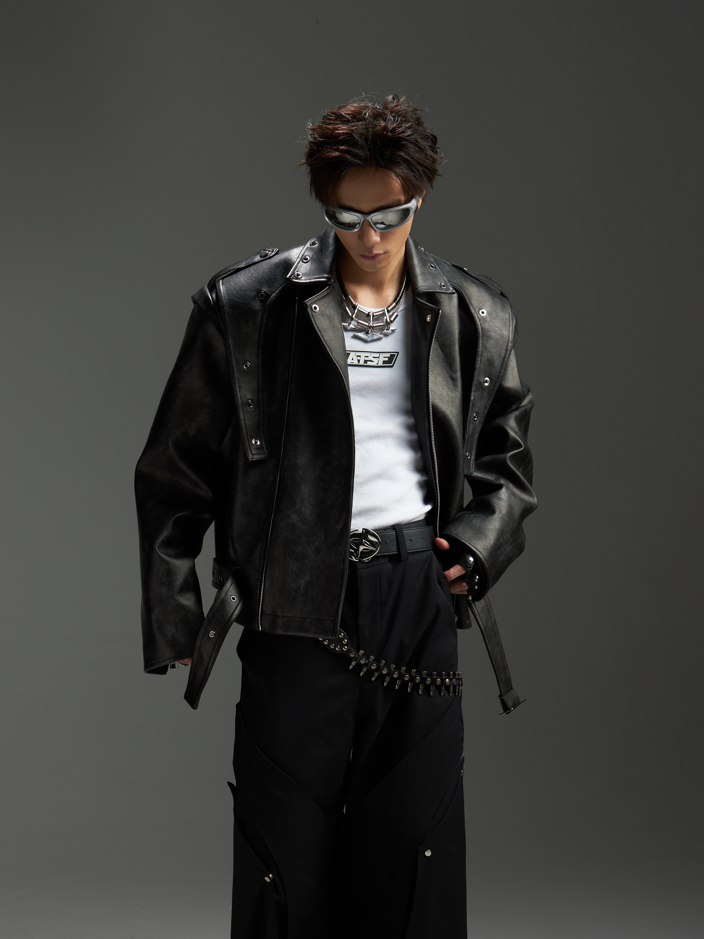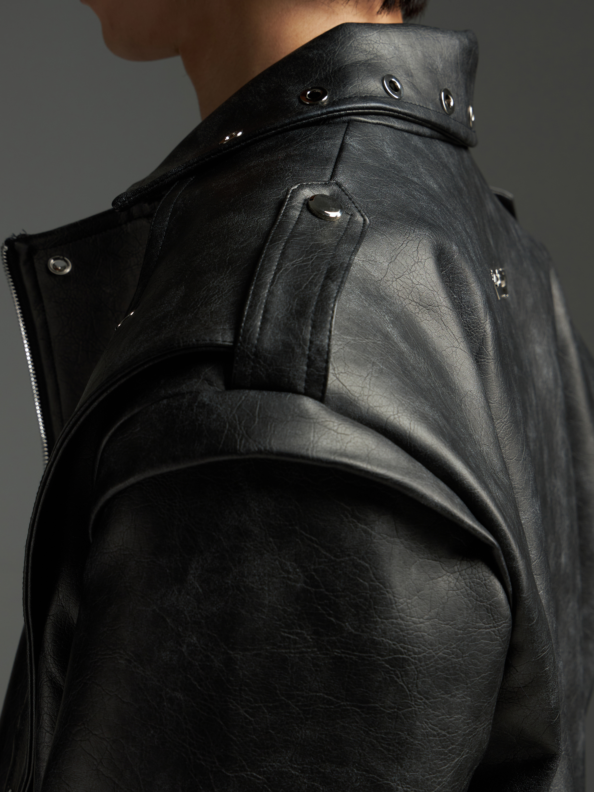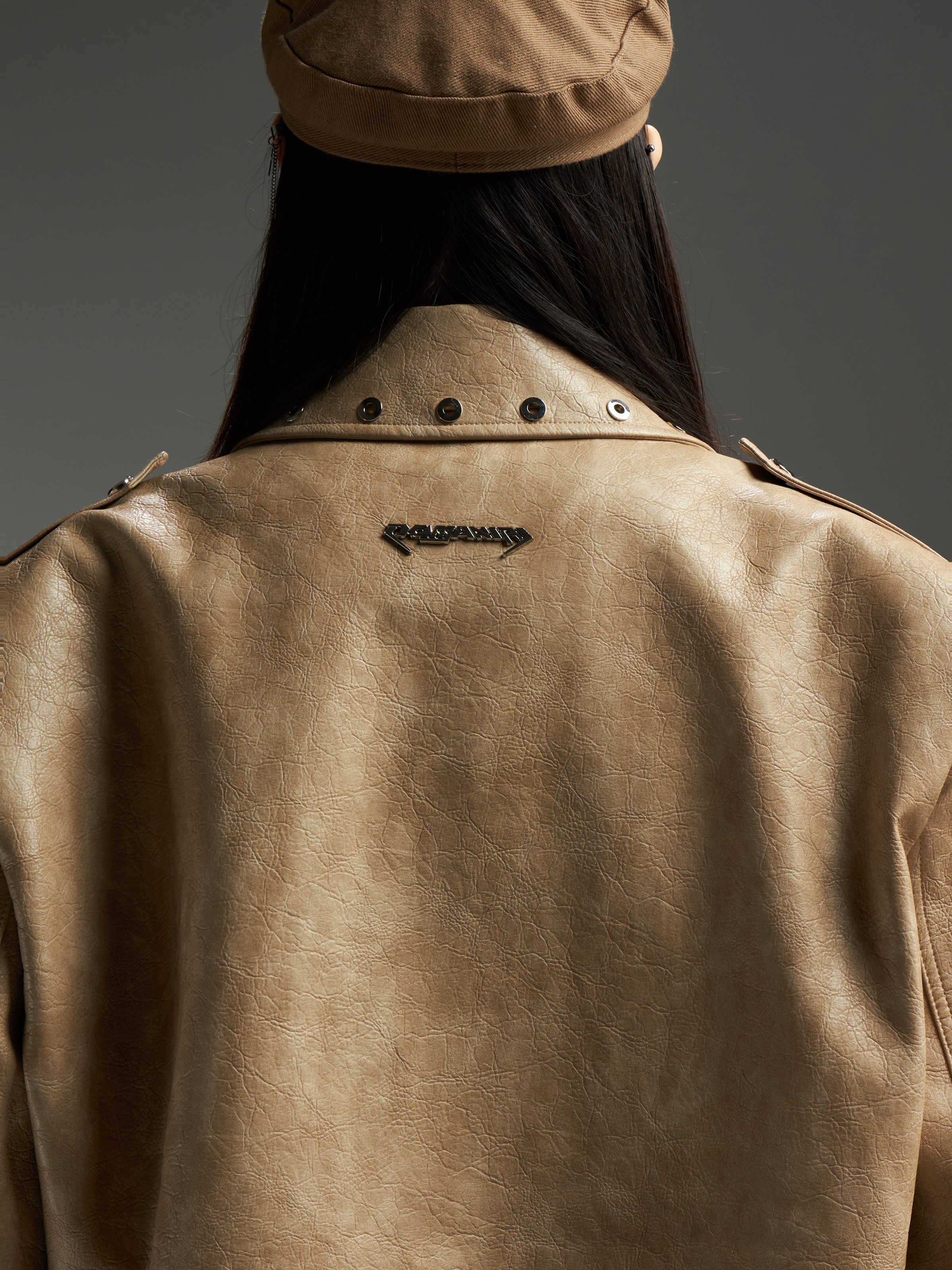 Washed Patchwork PU Leather Jacket WN13456