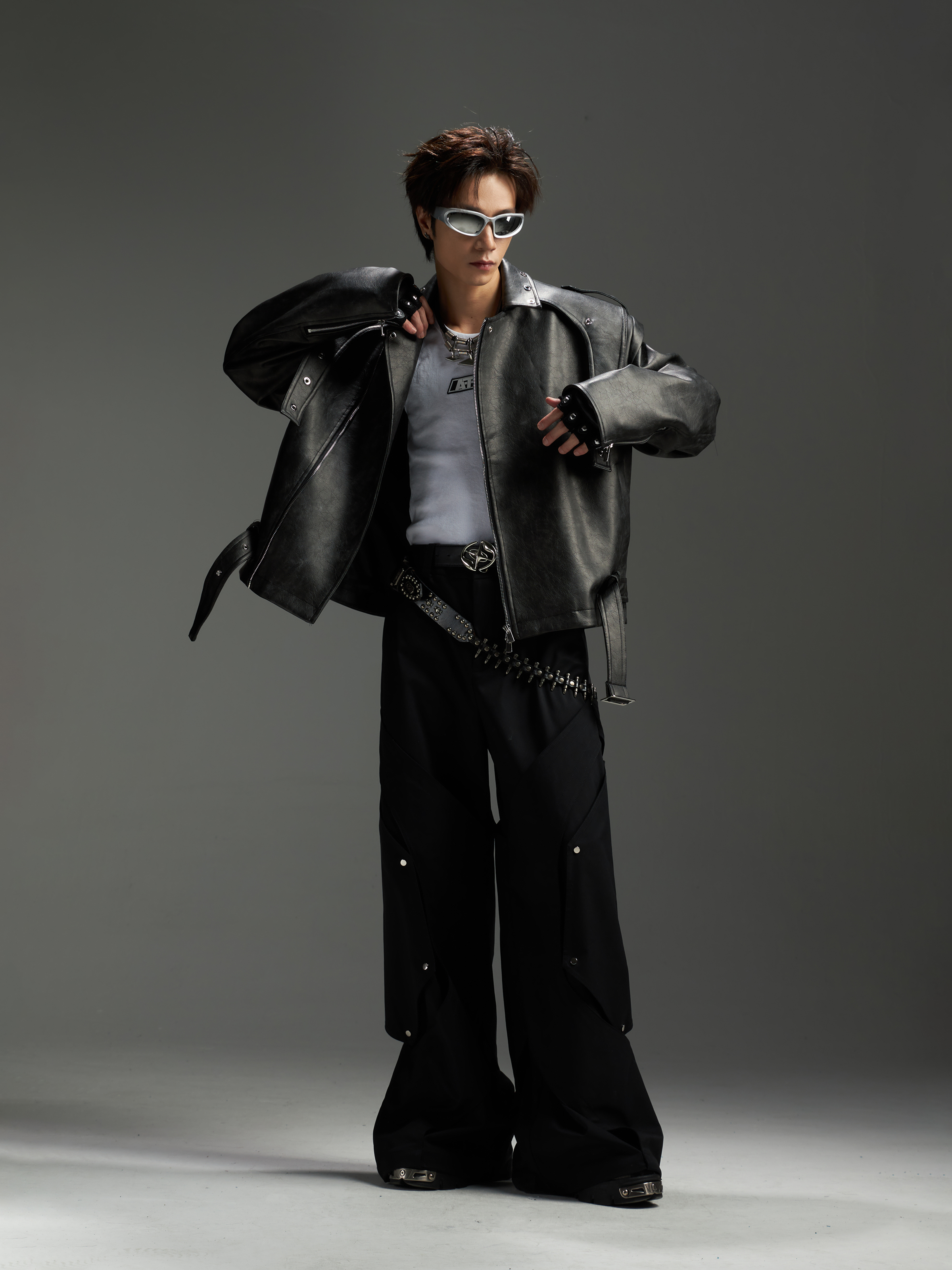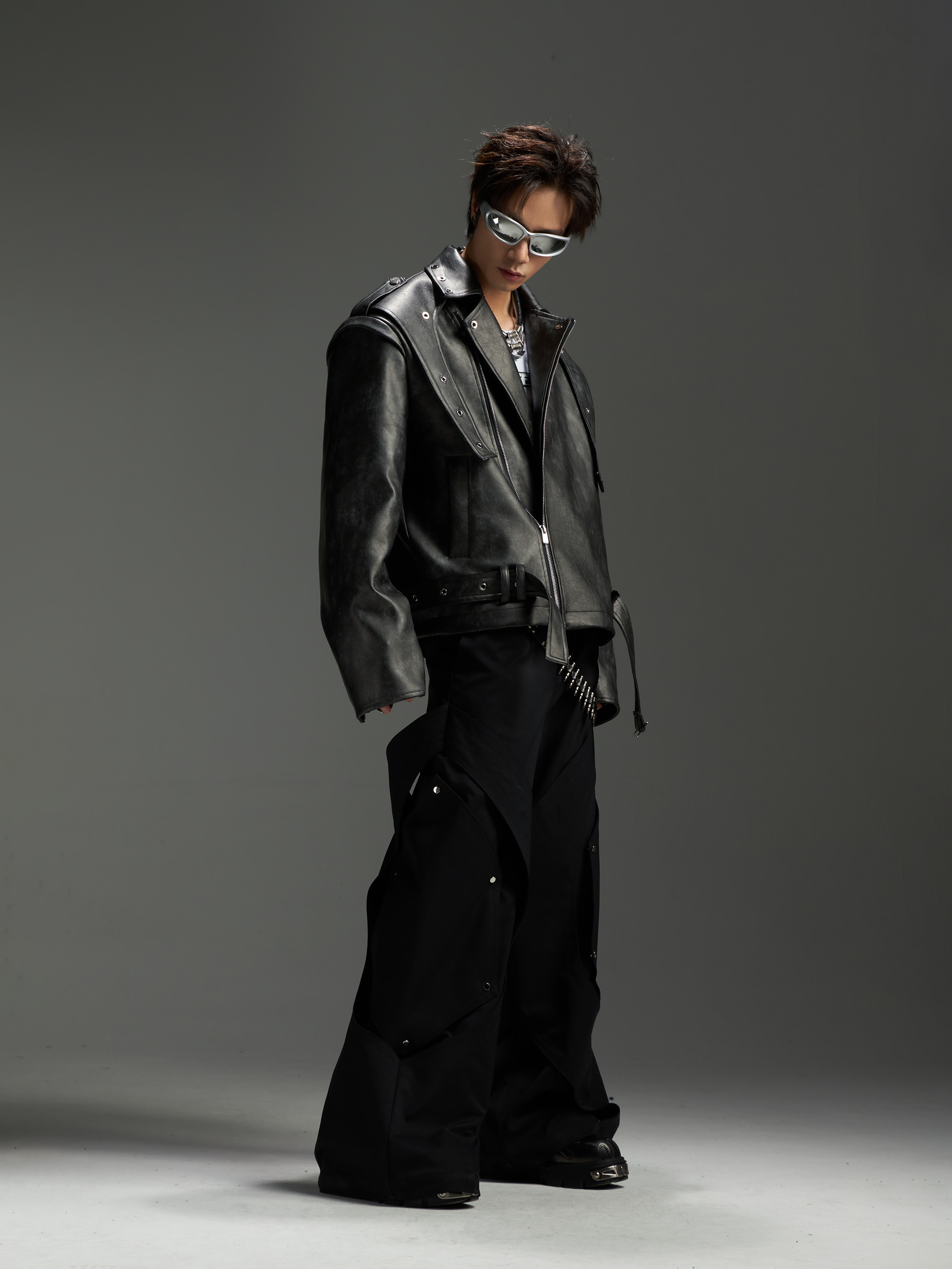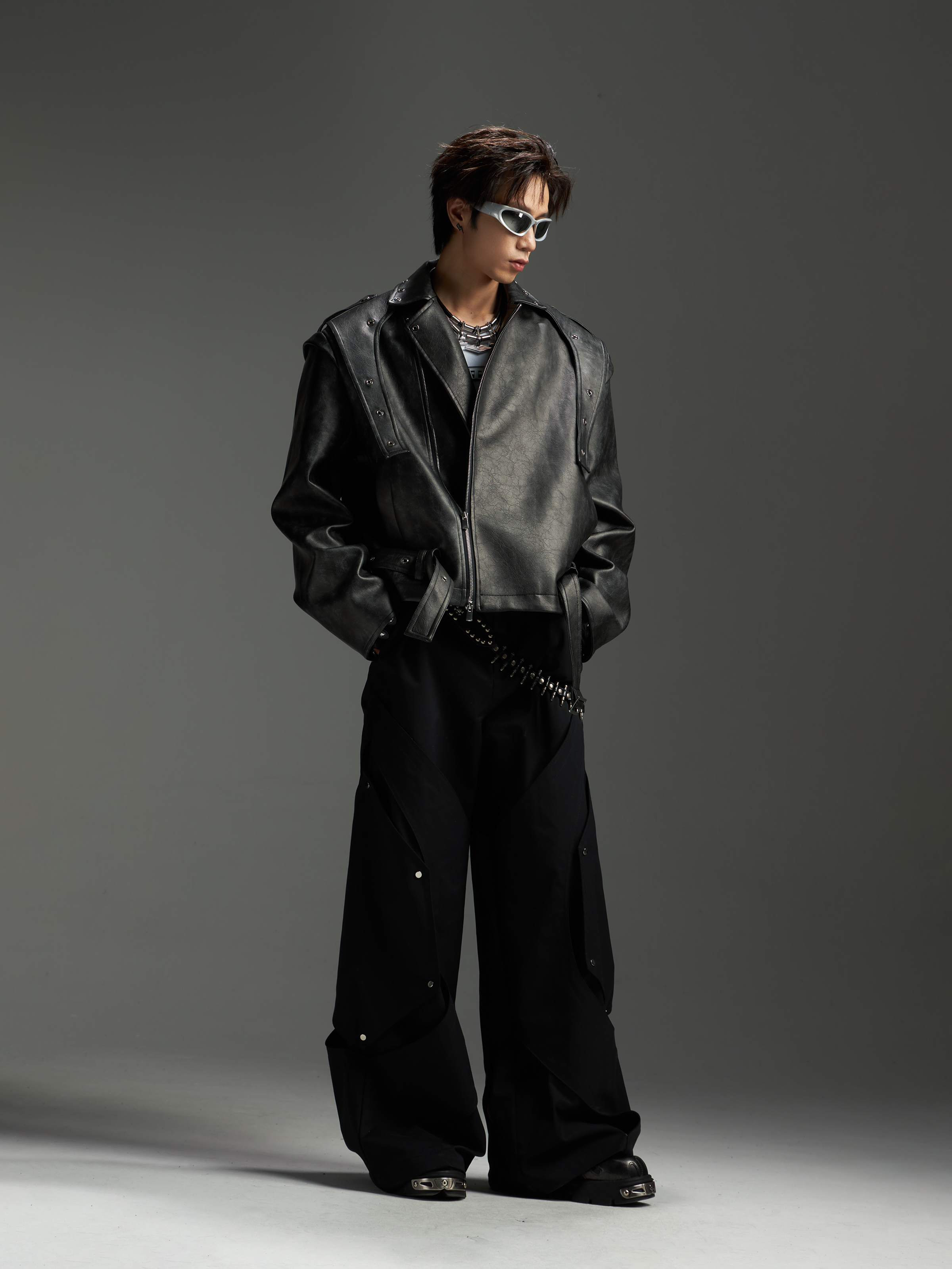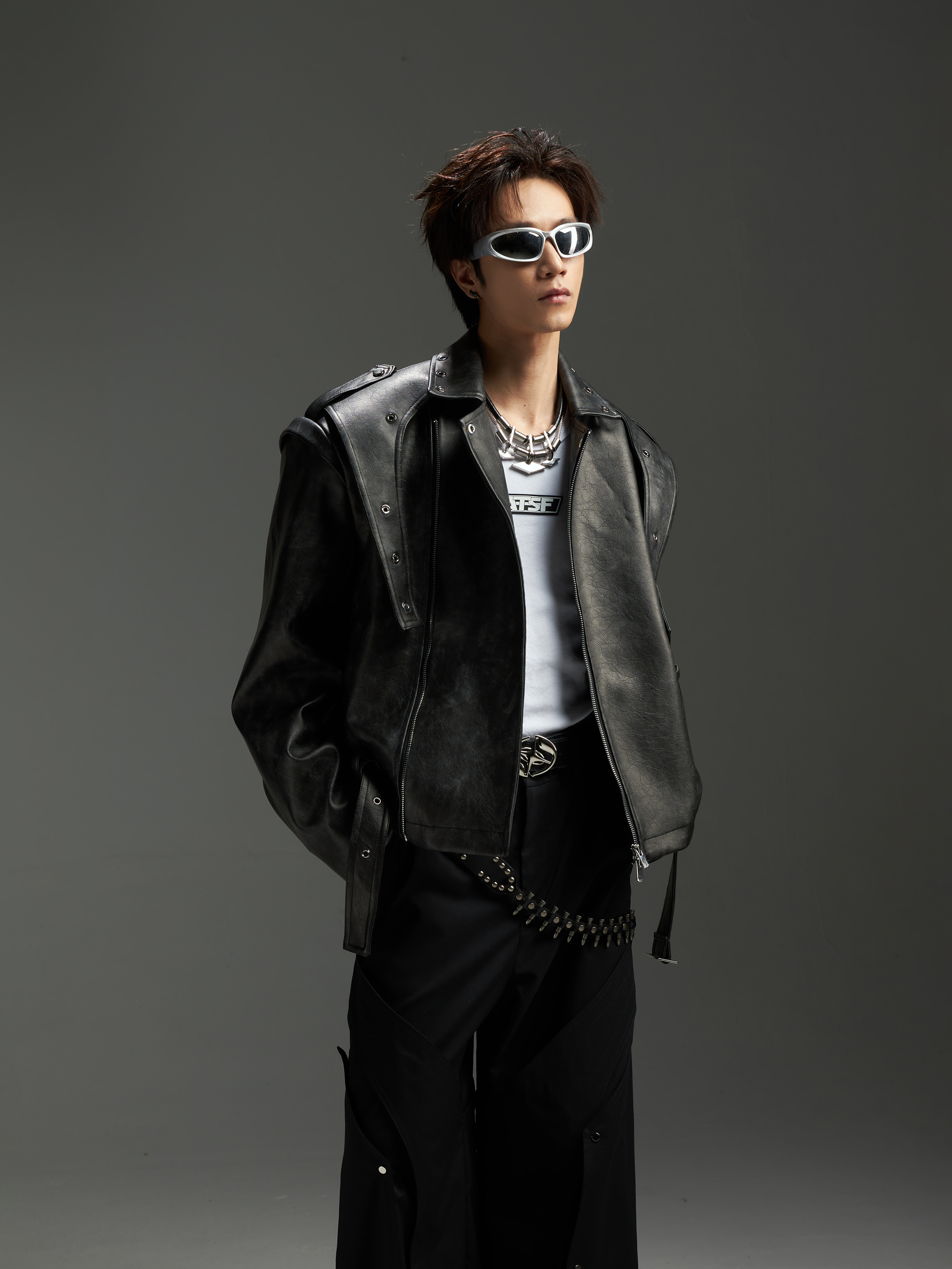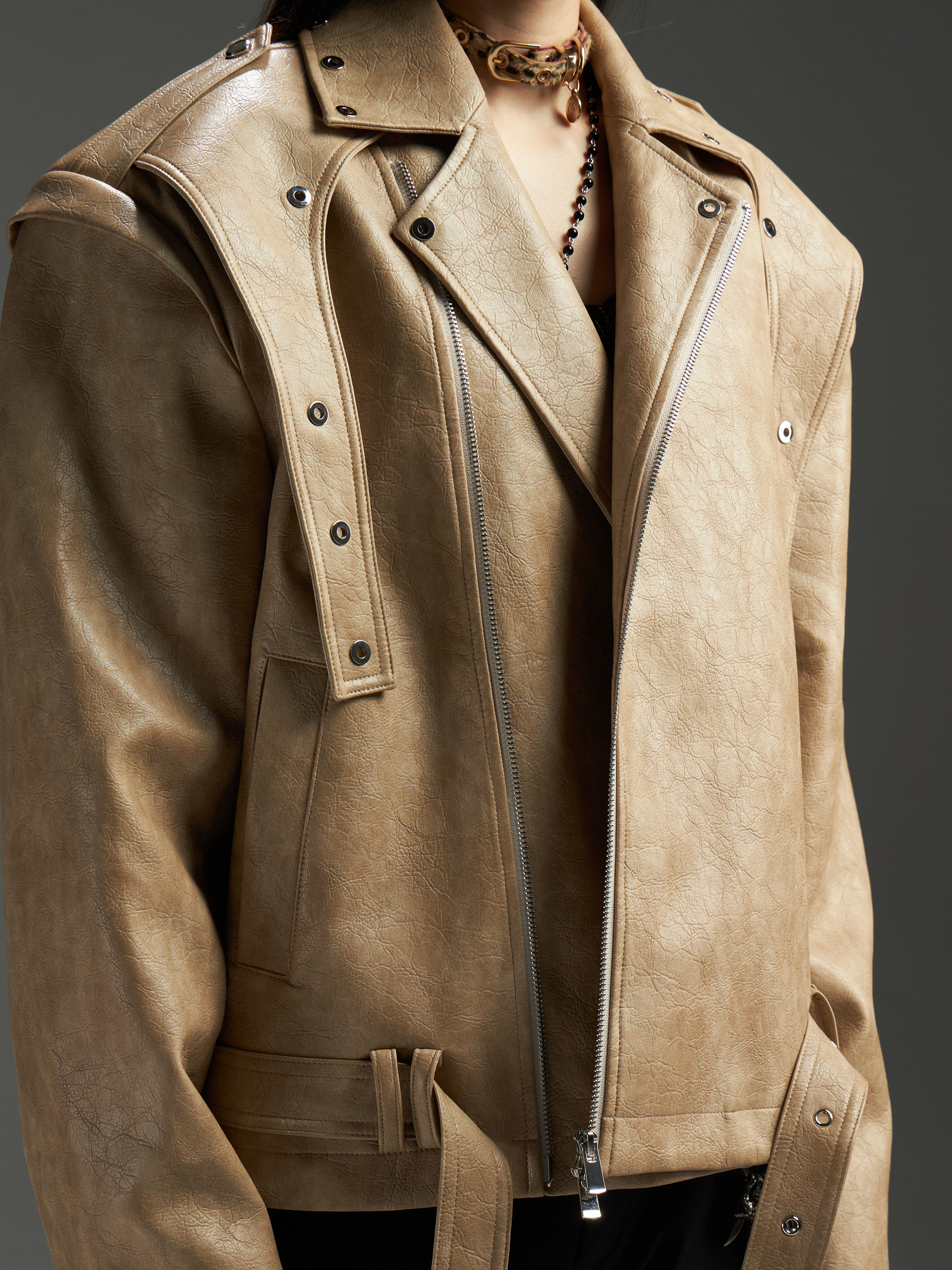 Washed Patchwork PU Leather Jacket WN13456