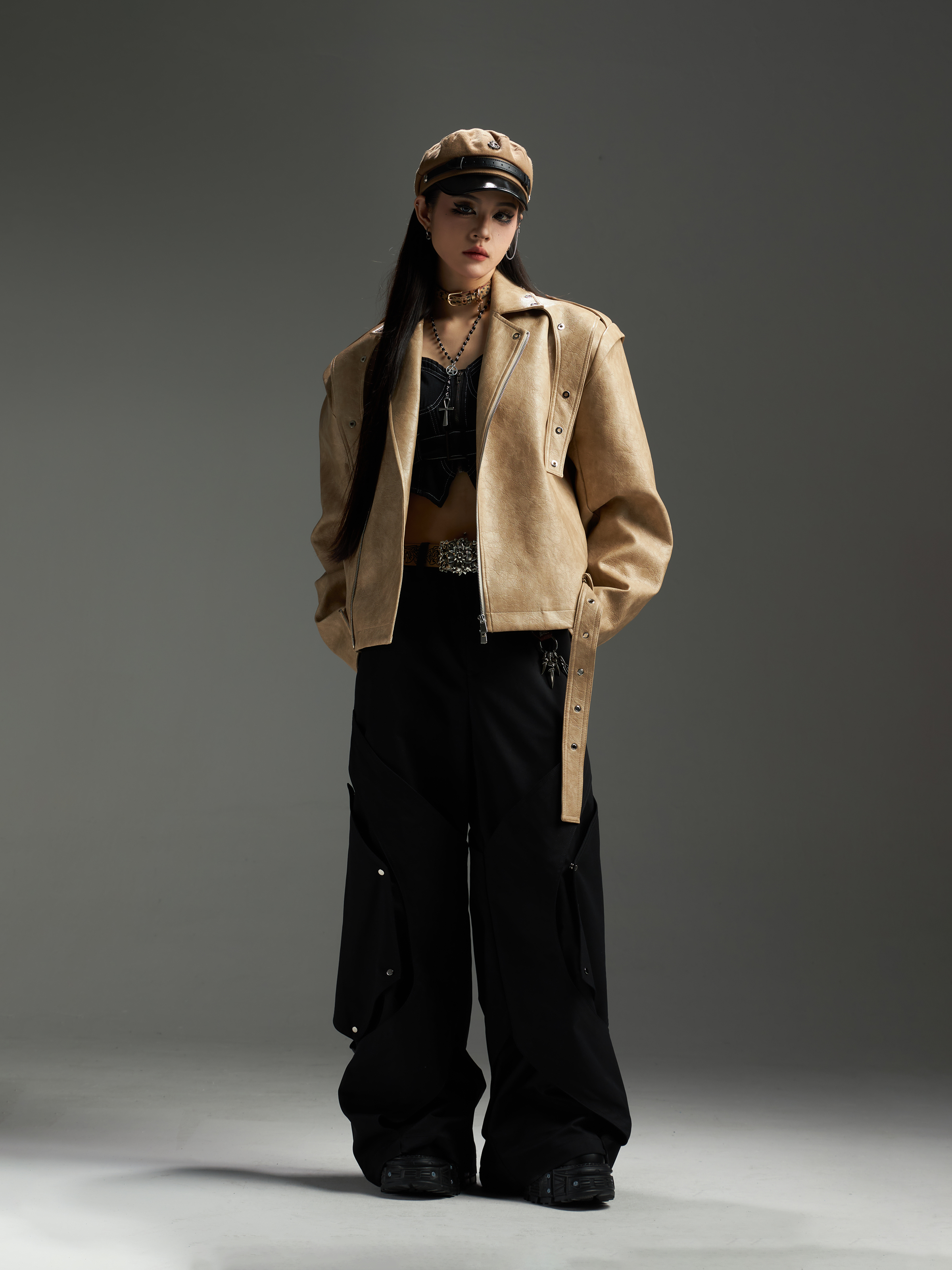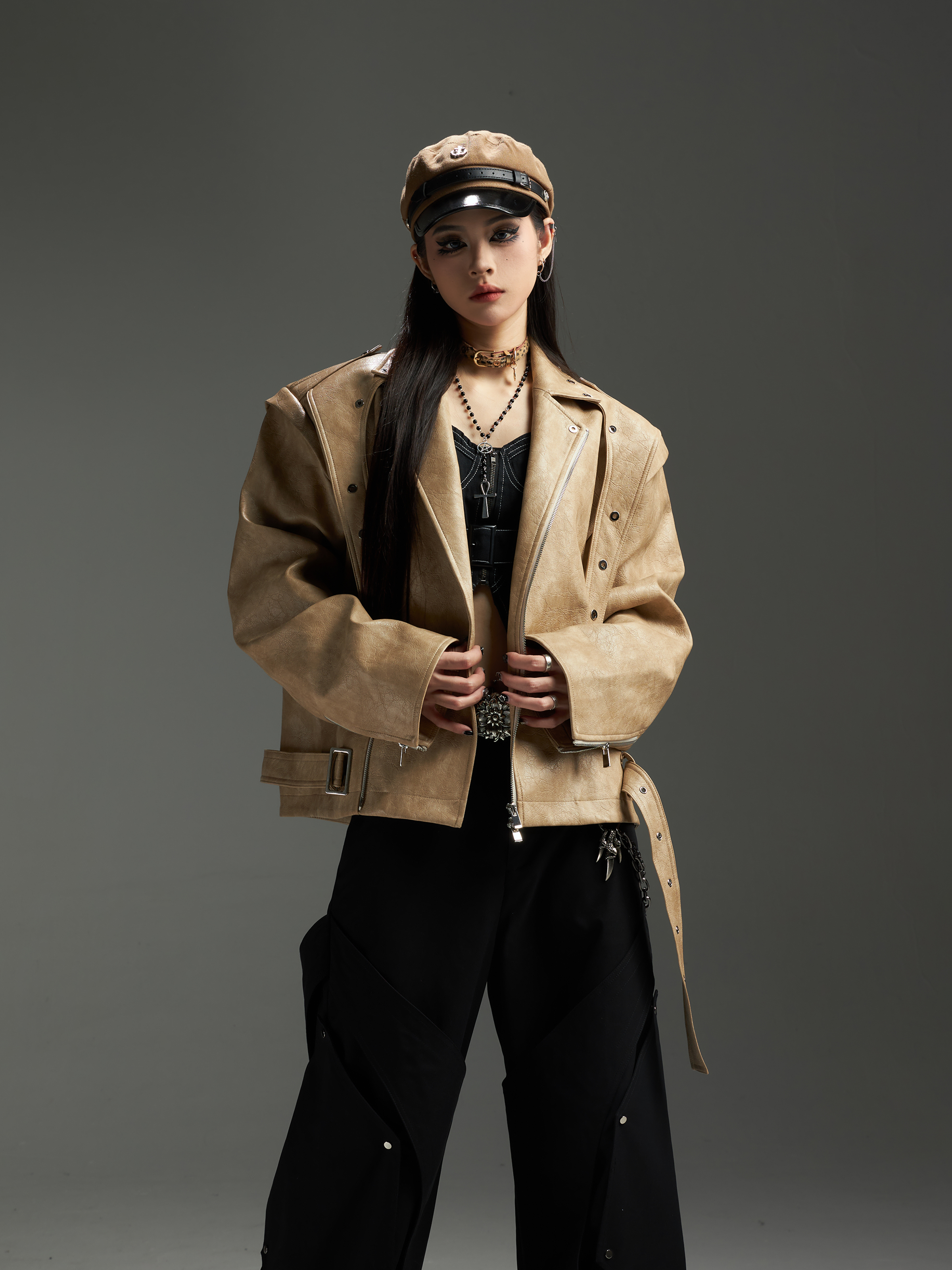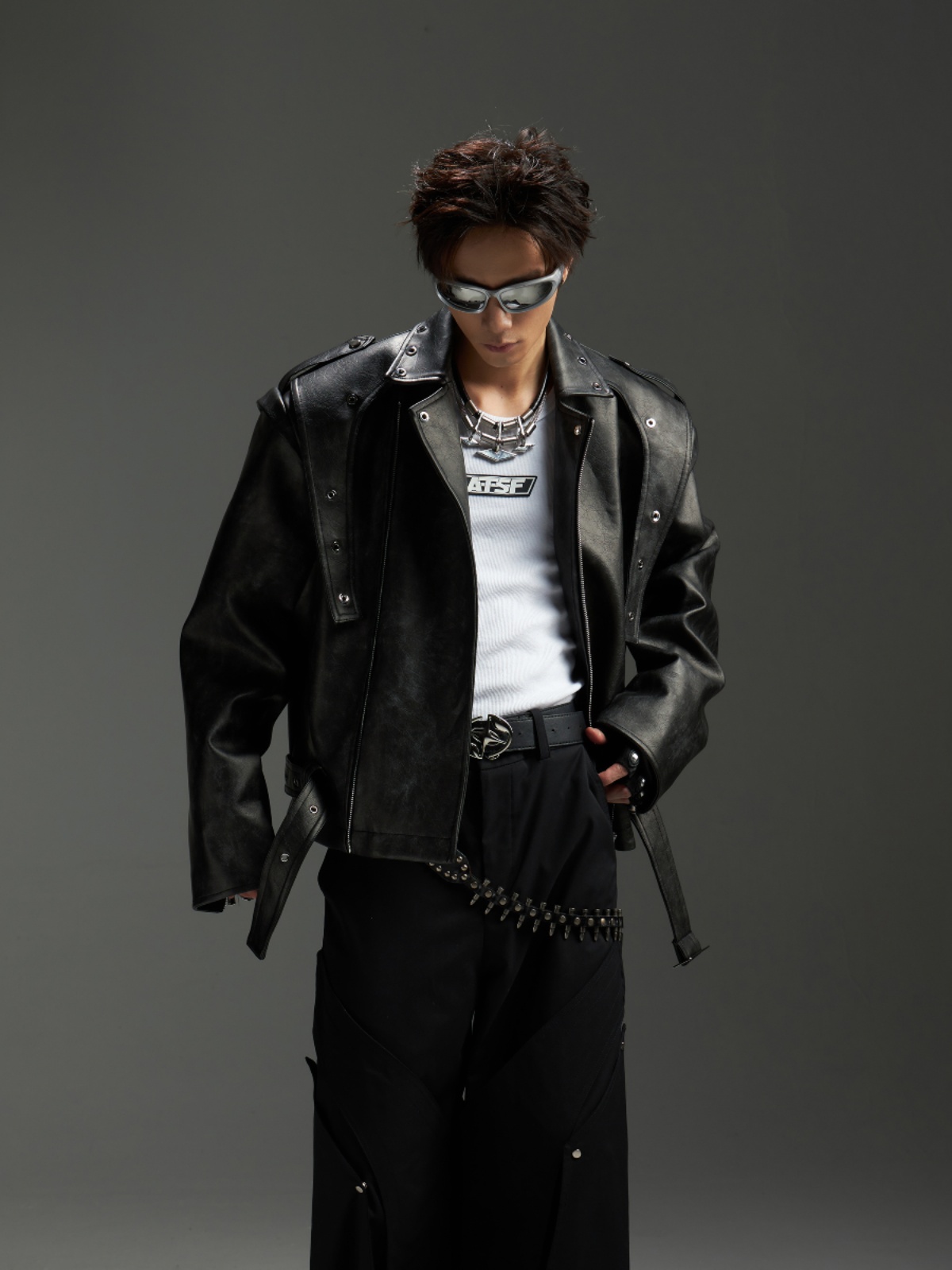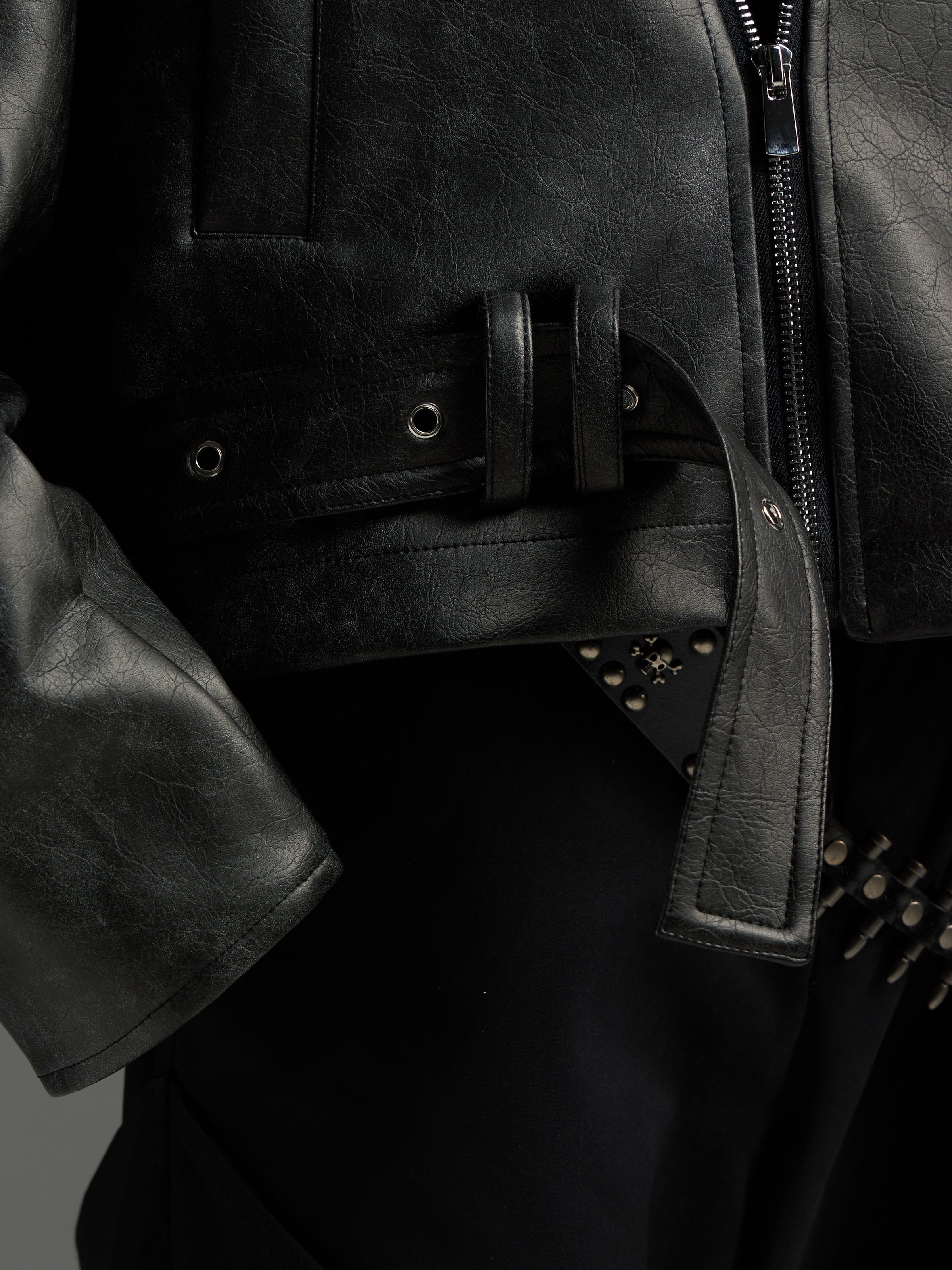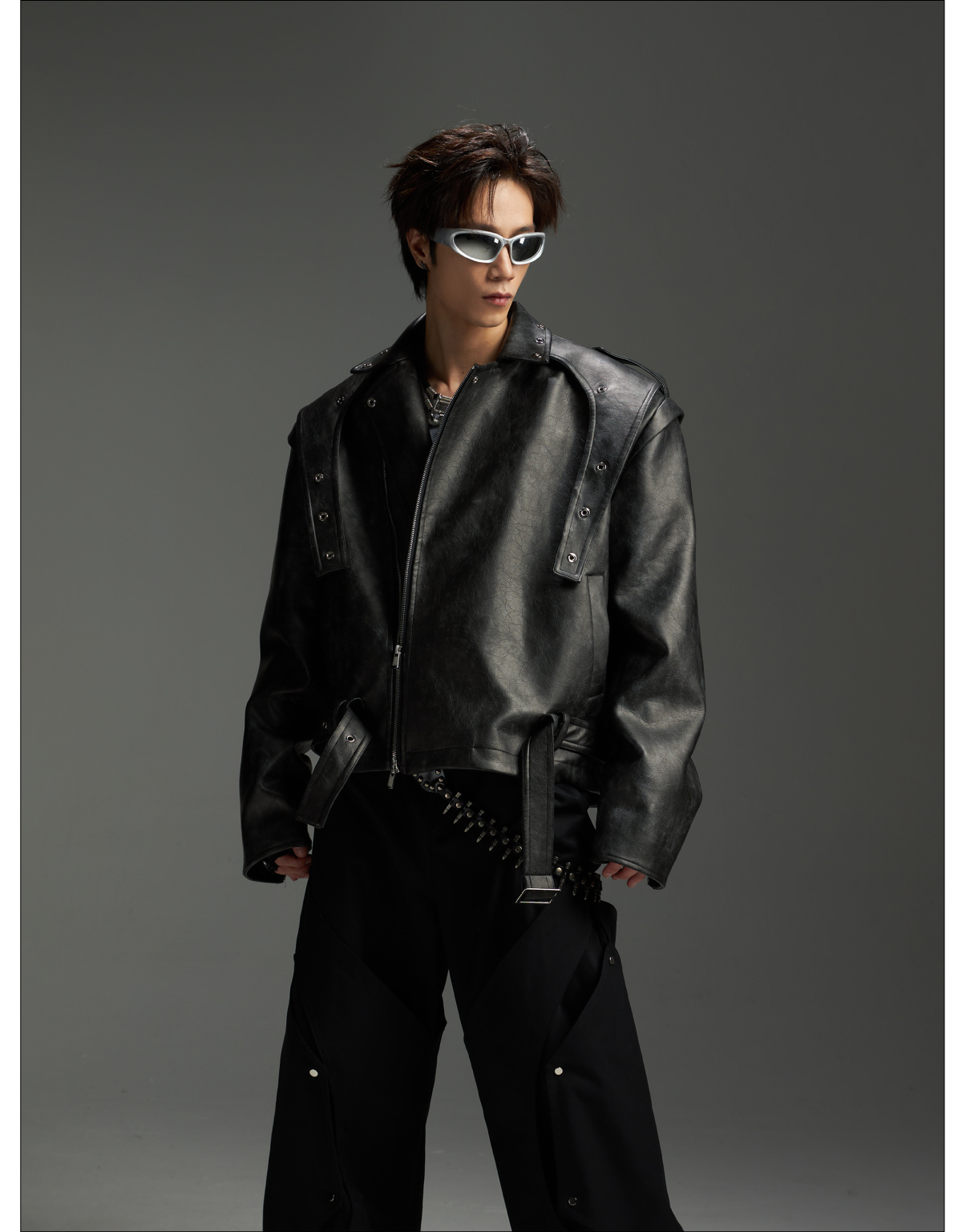 Washed Patchwork PU Leather Jacket WN13456